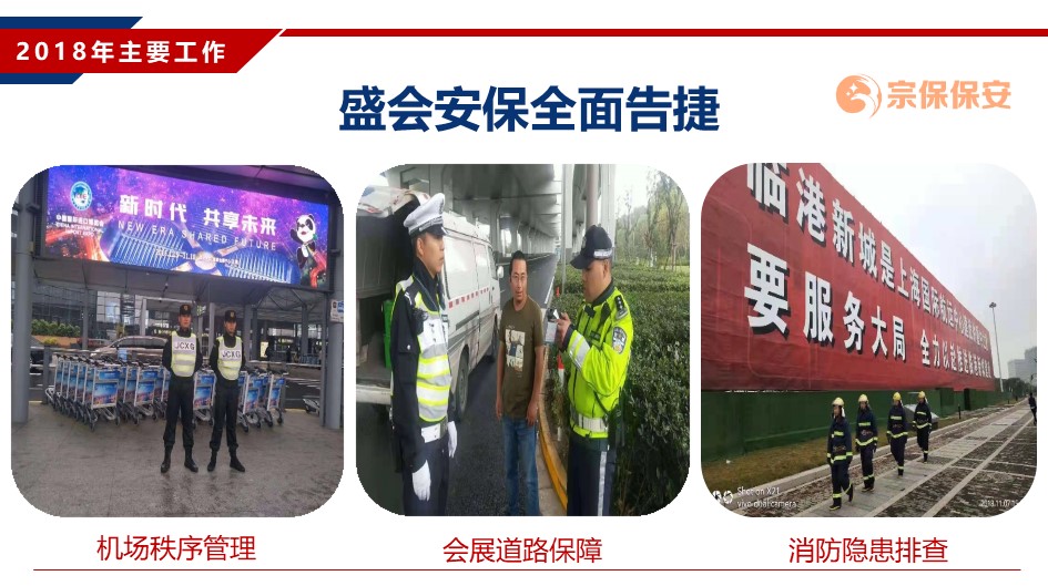 滄海橫流方顯英雄本色。首屆上海進口商品博會,舉世矚目,舉國關(guān)注,影響深遠(yuǎn)。盛會安保,政治敏感性強,社會關(guān)注度高,容不得半點差錯。公交安全保障、機場秩序維護、交通秩序保暢、無人機管控、社會治安巡邏、消防隱患排查等,多項任務(wù)面前,宗保人勇于擔(dān)當(dāng),忠于職守,樂于奉獻,無一事故,無一違紀(jì),用實際行動為國家盛會獻出一份安全厚禮。