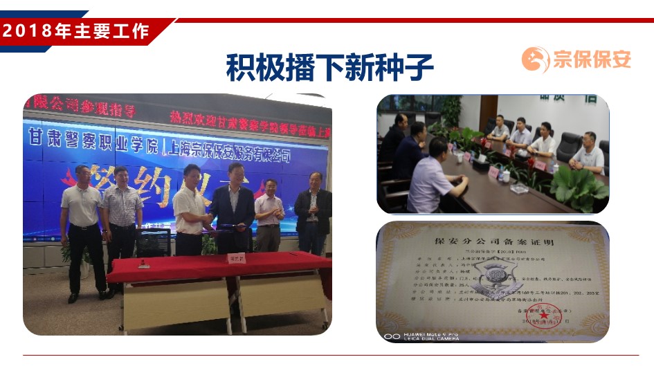 春種一粒粟,秋收萬顆子。與甘肅警察職業(yè)學(xué)院的多次接觸、溝通、交流,雙方簽訂戰(zhàn)略合作協(xié)議,宗保保安甘肅分公司注冊成立。這是公司布局甘肅、經(jīng)營西北、開發(fā)西部的戰(zhàn)略計劃關(guān)鍵環(huán)節(jié)。我們將依托利用甘肅警察職業(yè)學(xué)院的師資力量和人才優(yōu)勢,為公司新一輪發(fā)展助力。