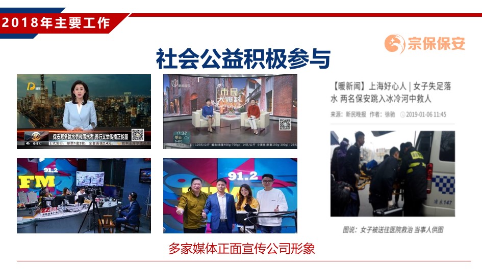 酒香不怕巷子深,由風(fēng)做介質(zhì);好事照樣傳千里,靠媒體傳播。古核桃拍賣,助力漾濞,積極競拍,精準(zhǔn)扶貧,當(dāng)仁不讓;殘疾人公益電影拍攝,主動參與,大力投入。2018年,《文匯報》、《新民晚報》、《保安與技防》、浦東電視臺、鄭州交通廣播電臺等多家媒體相繼報道公司的正面形象。媒體紛至而來,既是社會各界對宗保人踏實工作、文明值勤的認(rèn)可,更是宗保企業(yè)文化這壇佳釀不斷發(fā)酵、香飄久遠(yuǎn)所致。