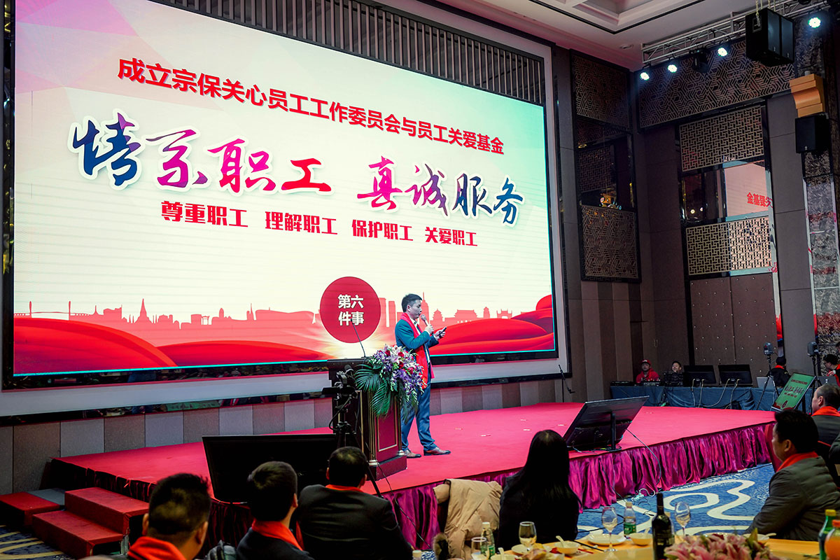 2019年1月11日晚,在宗保公司的年會上,隨著董事長馮中保宣布“關愛員工愛心基金”的成立,現(xiàn)場掀起了愛心捐款熱潮。