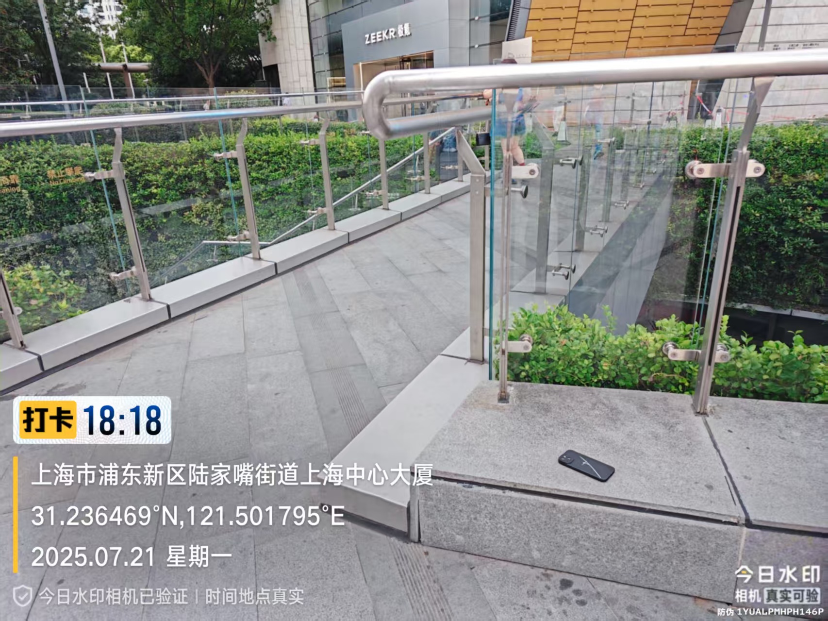 7月21日18:18,宗保公司駐浦東新區(qū)陸家嘴綜合管理項(xiàng)目員工任藝珂在金茂大廈黑攝影附近巡邏時(shí),撿到一部蘋果手機(jī)??紤]到失主丟了手機(jī)可能會(huì)返回尋找,便決定在原地邊巡邏邊等待失主。