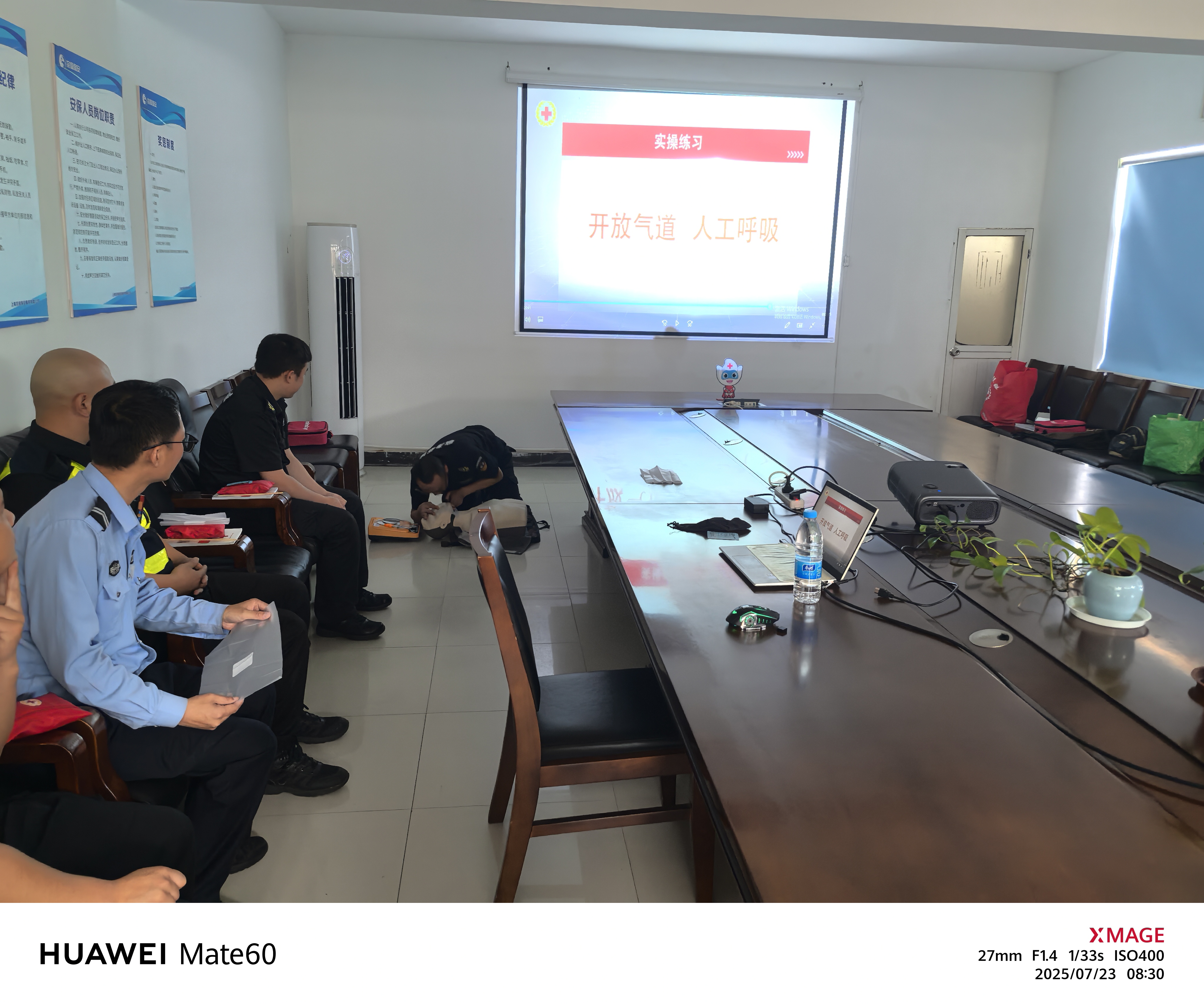 7:30,培訓正式開始。培訓老師通過視頻教學與實操演練相結(jié)合的方式,為參訓人員進行系統(tǒng)授課。理論知識環(huán)節(jié),員工們認真學習了急救相關(guān)的基礎(chǔ)理論,對急救的重要性、基本原則等有了更清晰的認識。實操演練部分,大家重點進行了單純按壓練習、放氣道以及人工呼吸等關(guān)鍵技能的訓練。
