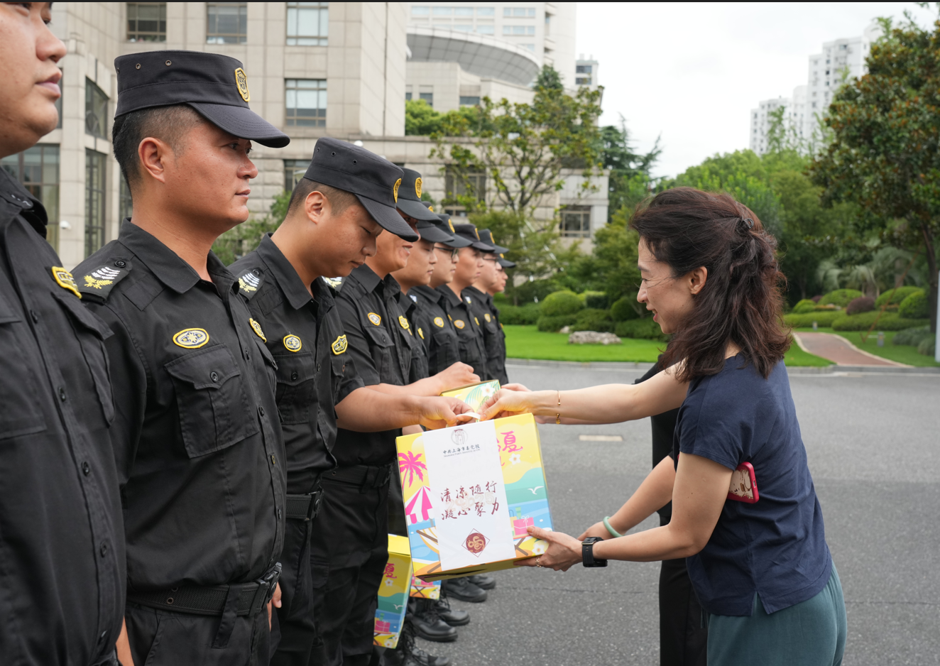 7月29日,上海市委黨校副校長(zhǎng)戴冰一行,頂著炎炎烈日,看望慰問(wèn)高溫下堅(jiān)守崗位的宗保公司員工,為他們送上防暑降溫用品,表達(dá)市委黨校對(duì)安保人員的關(guān)心和問(wèn)候,感謝大家為維護(hù)黨校秩序所付出的辛勤勞動(dòng),叮囑大家安排好休息,照顧好身體。