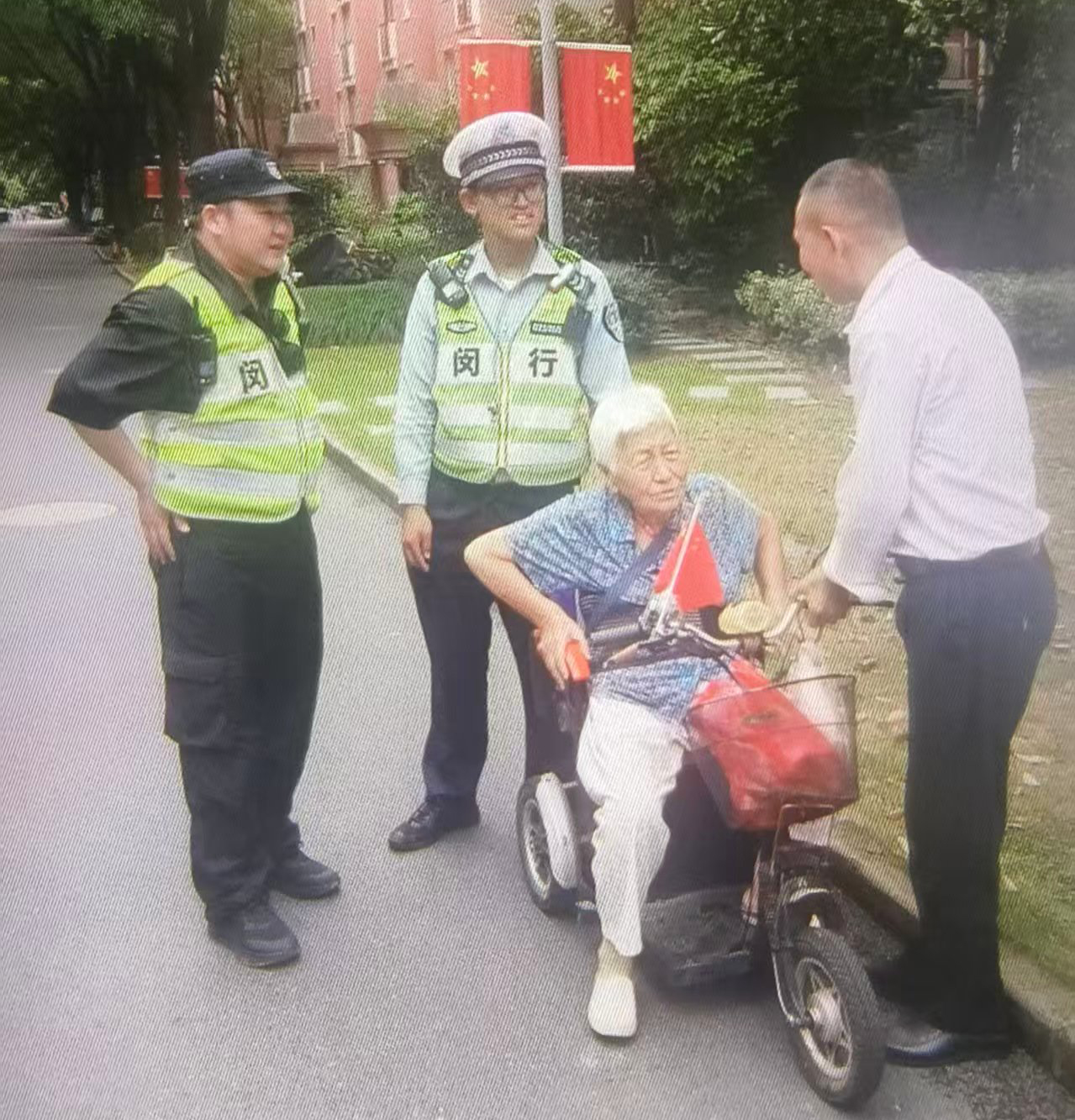 10月1日上午,宗保公司駐閔行區(qū)虹橋交管輔助項目員工李業(yè)兵和汪俊連在執(zhí)勤中,熱心推車幫助一位七旬老人平安回家。