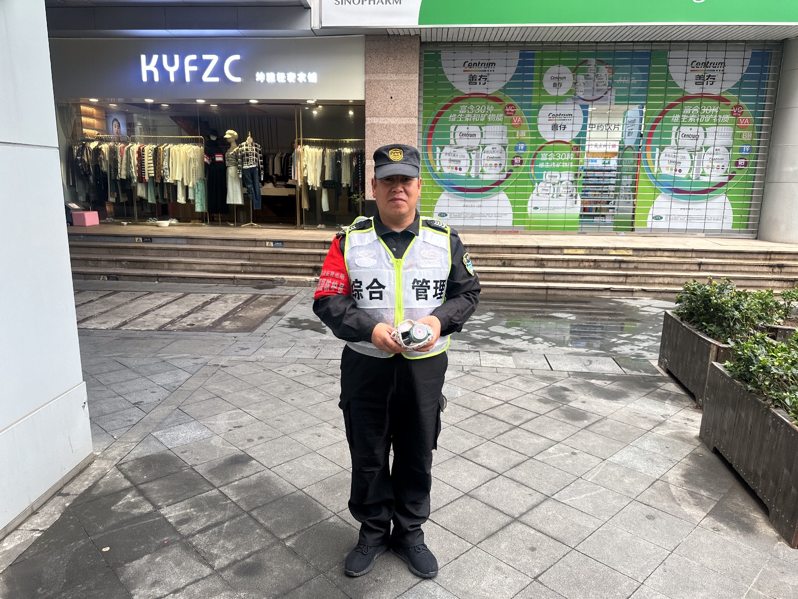 11月5日14:30,宗保公司駐浦東新區(qū)陸家嘴綜合管理項目員工漆貴成在南泉北路小駱駝執(zhí)勤時,在共享單車車筐里發(fā)現一個小包,內有公司法人公章、公司公章等物品??紤]到失主丟了重要物品可能會返回尋找,漆貴成便在原地邊執(zhí)勤邊等待。