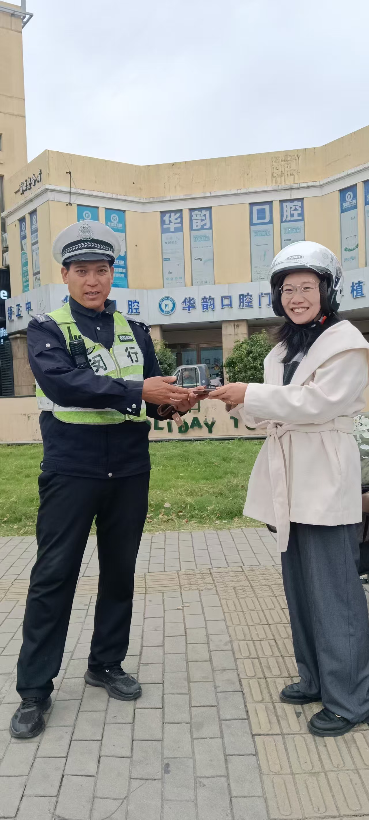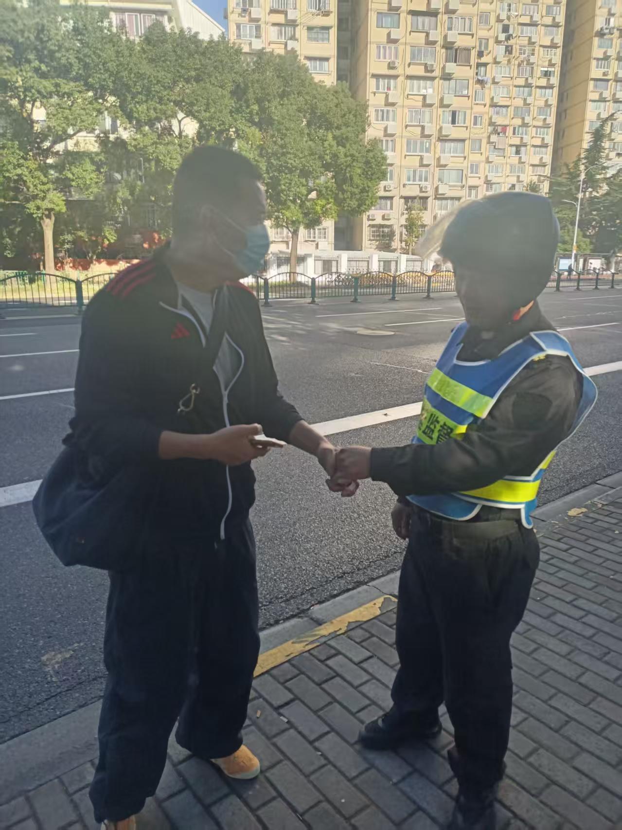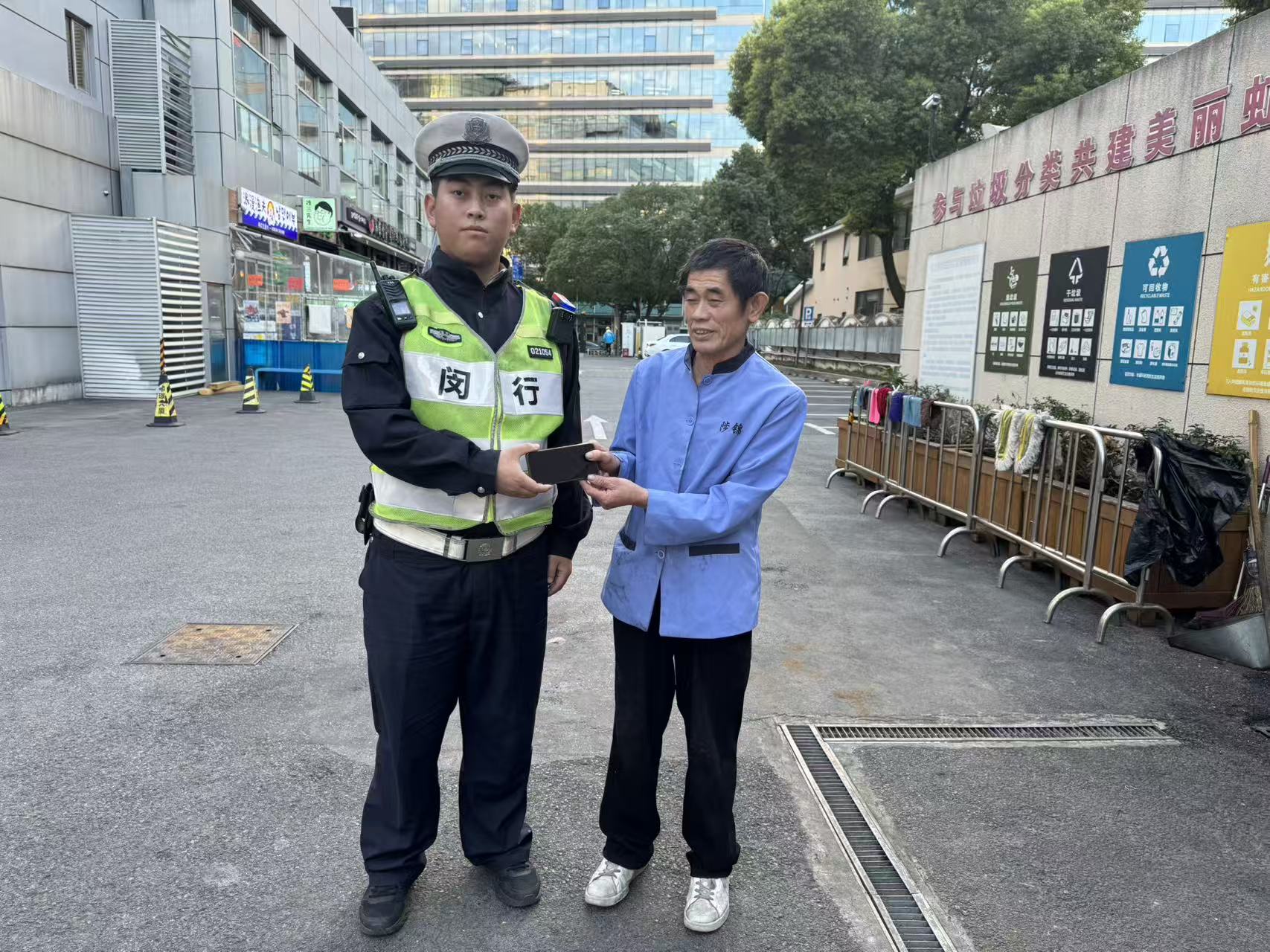 過了半小時左右,一位自稱是失主的男士打來電話。陳英告訴男士手機已被妥善保管,請稍后到虹莘路虹泉路崗亭領取。