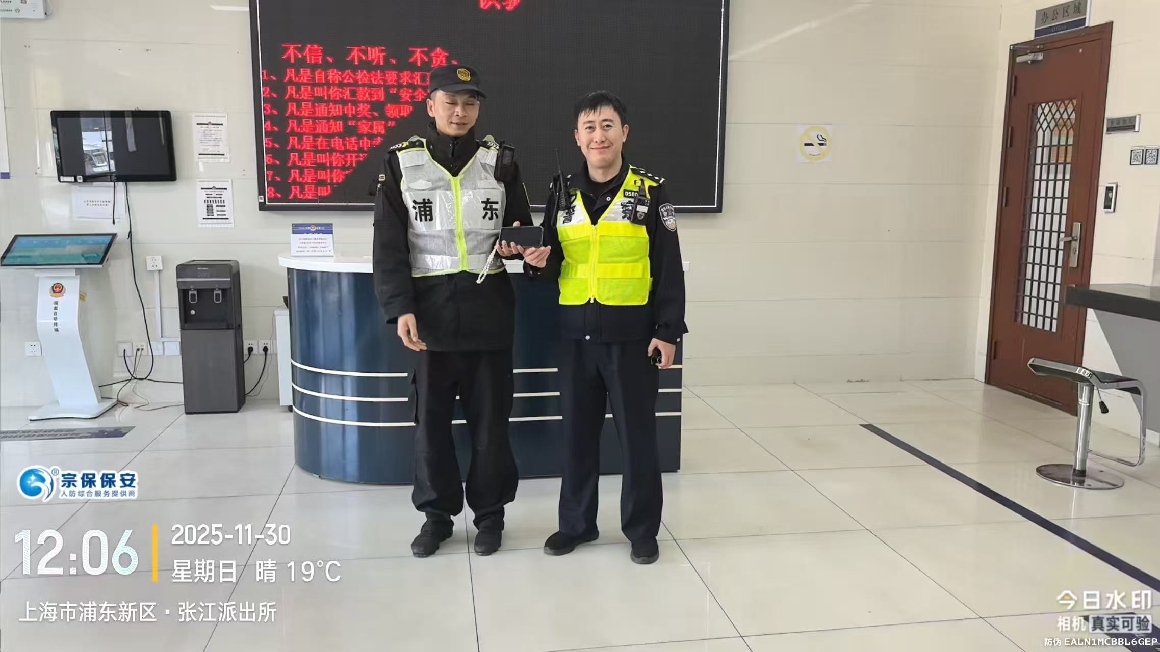 宗保公司駐浦東新區(qū)張江派出所輔助項目員工撿到蘋果手機(jī)上交民警