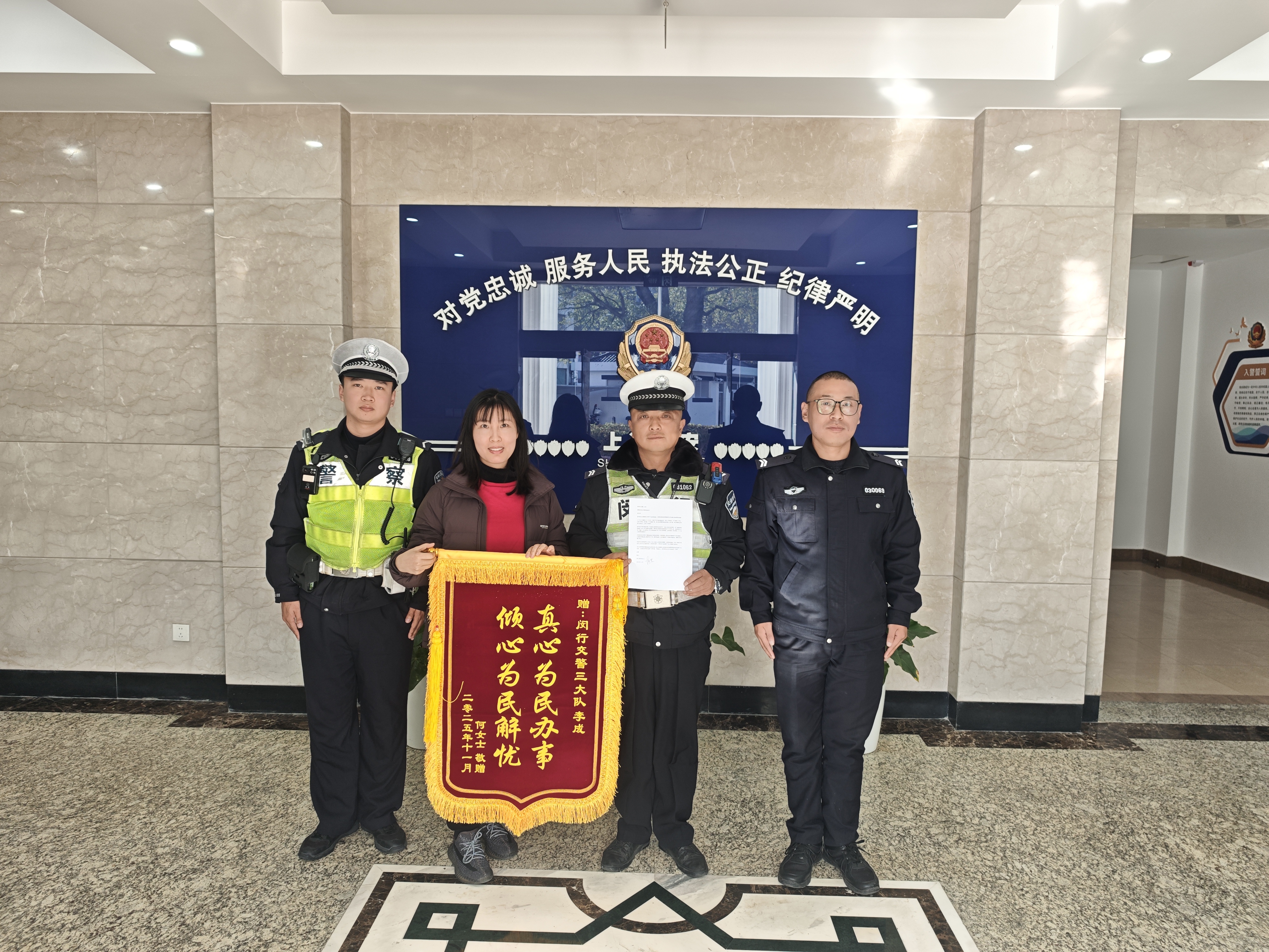 輪胎更換完畢后,李成又仔細(xì)檢查了車輛輪胎氣壓及其他關(guān)鍵部位,確認(rèn)車輛無安全隱患后,才放心讓何女士駕車離開。事后,何女士為表示感謝,特意送來一面錦旗表達(dá)謝意。
