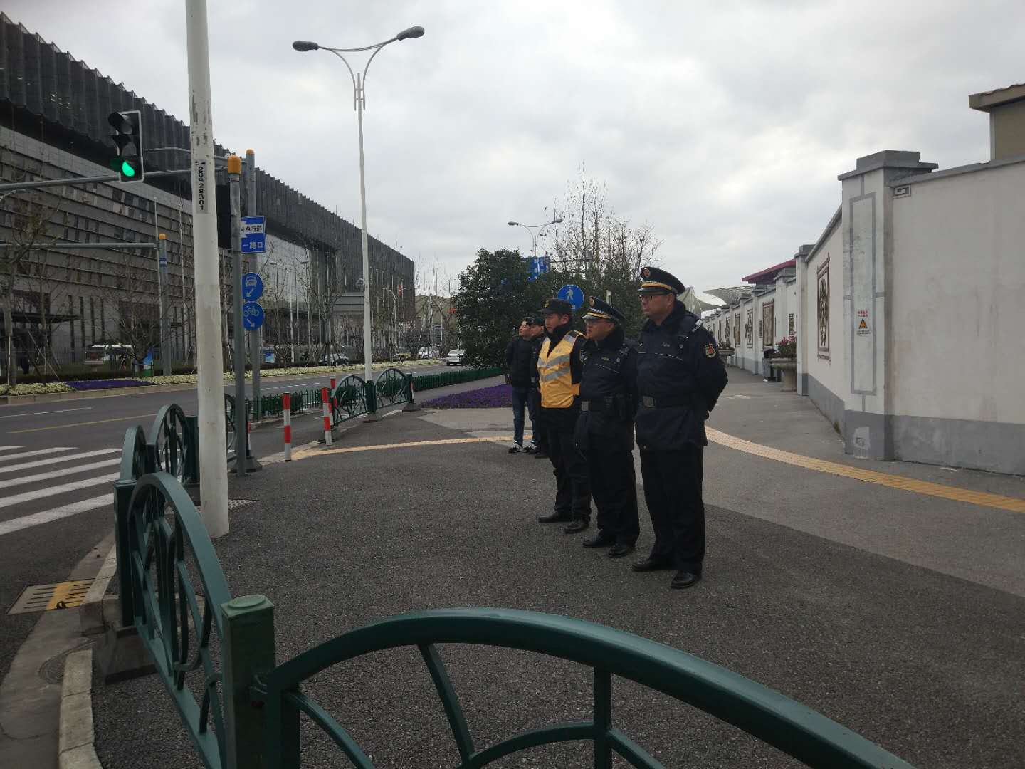 兩會期間正值寒冷冬日,室外溫度低,北風呼嘯,甚至伴有雨雪。宗保特保隊員冒著寒風冷雨依然堅守在自己的崗位,參與在交通輔警和城管輔警行列中,協(xié)助指揮車輛和引導人員進出。