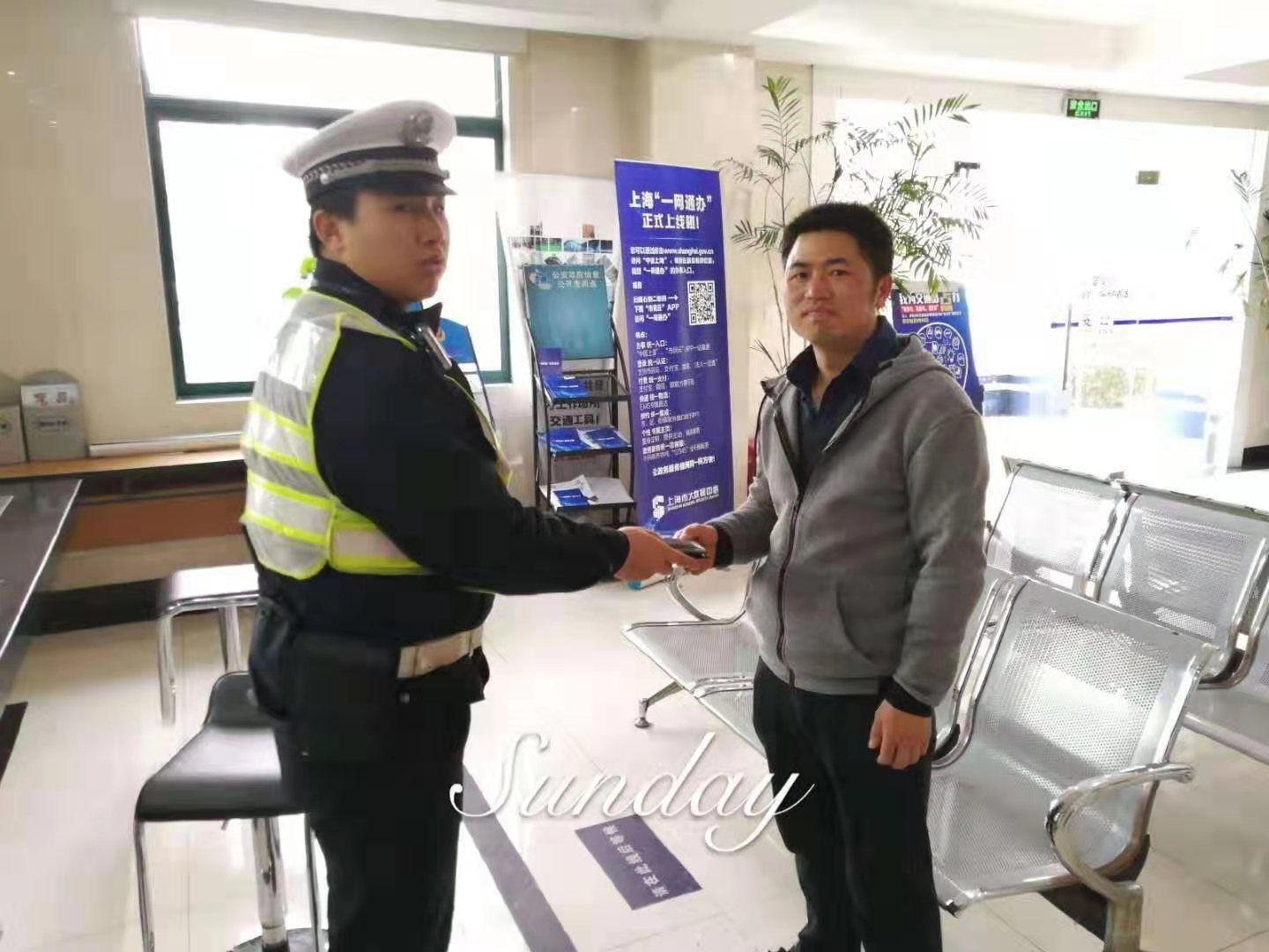 2019年2月24日,一位男士握著宗保公司駐金橋輔警項(xiàng)目隊(duì)員劉玉坤的手,再三感謝——感謝歸還他丟失的錢包。