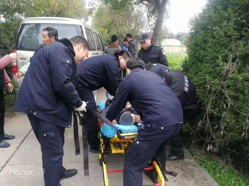 當日12:30分左右,金山衛(wèi)五違組八字村巡查員趙福如在轄區(qū)內(nèi)巡查時,猛聽到車輛撞擊聲,聞聲而去,看到一位老太太被撞倒農(nóng)田里,頭部流血不止。趙福如先后拔120急救電話和110報警,又通知巡查組長張建華。組長帶著其他隊員趕到現(xiàn)場,實施簡單救援,待救護車到達后,一起協(xié)助救護人員,幫忙處理傷情并將傷者抬上救護車后,又向交警提供現(xiàn)場情況。