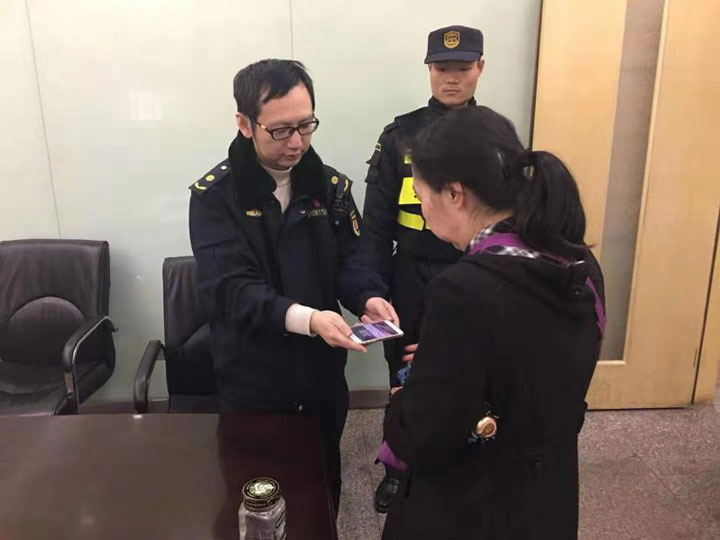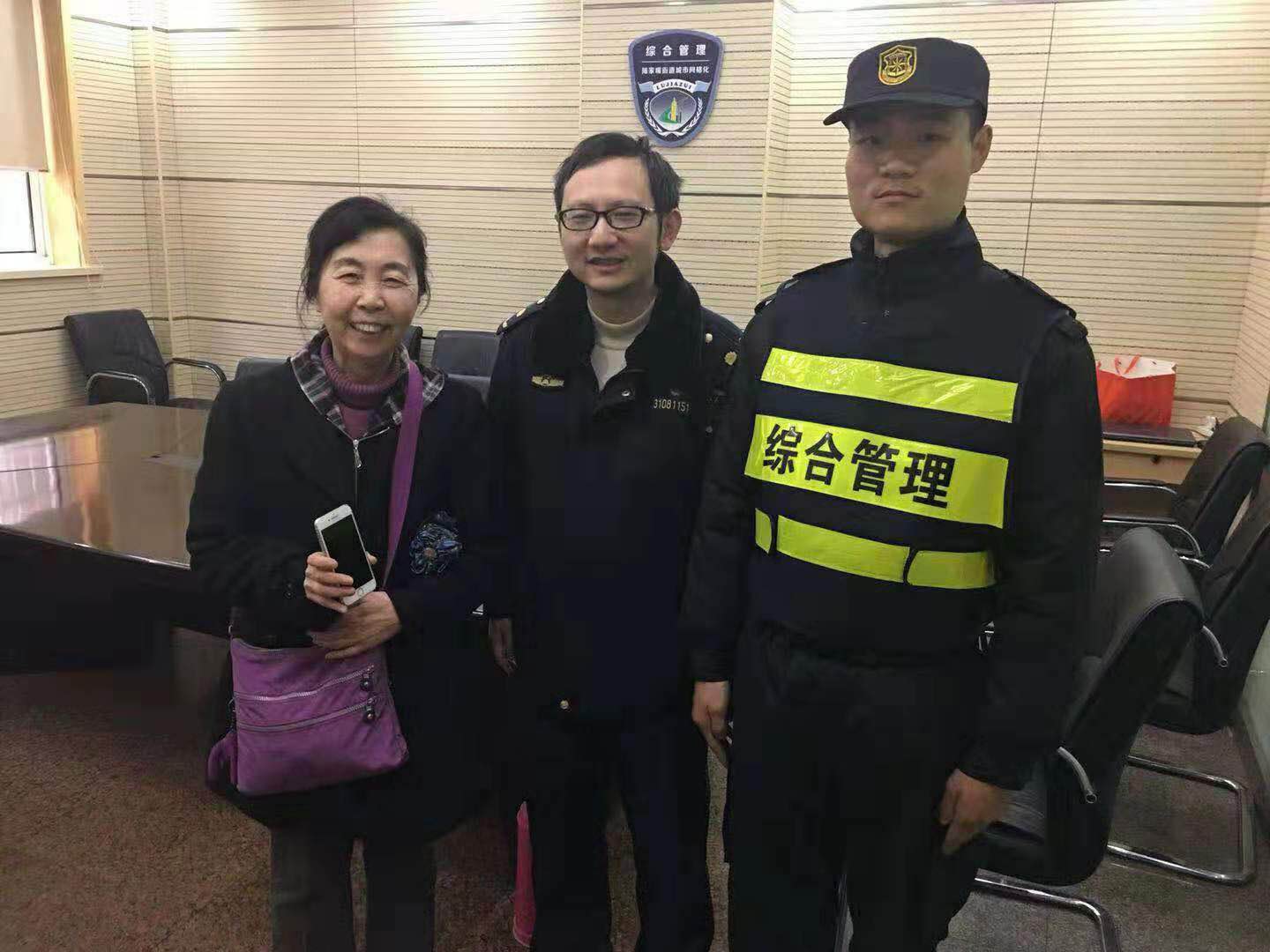 下午15:00時,失主老奶奶至城管中隊,經(jīng)核對無誤,城管隊員將手機(jī)交還給失主,老奶奶再三表示感謝,并要支付酬金給撿到手機(jī)的特保隊員。隊員當(dāng)即表示不用酬謝。