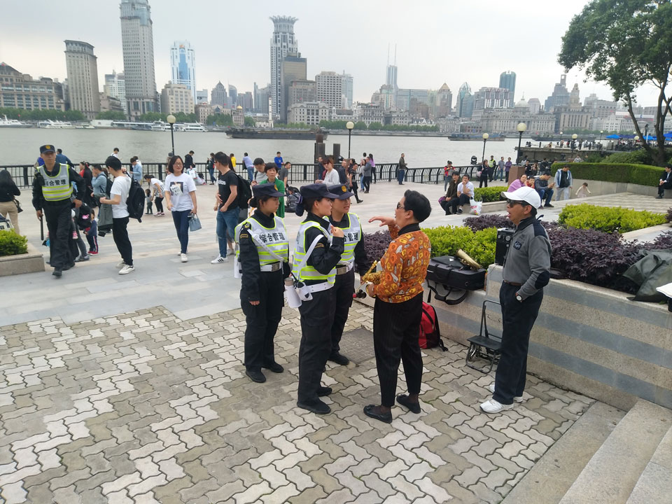 上海宗保保安公司陸家嘴城管輔助隊(duì)員余澤權(quán)說(shuō):“五一到了,來(lái)陸家嘴旅游的人也越來(lái)越多,讓更有序、更干凈一點(diǎn),給游客留點(diǎn)好印象?!?/p>