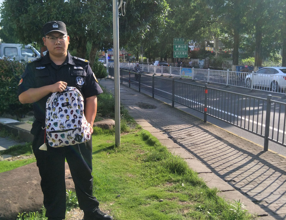 當(dāng)日16:30左右,宗保隊(duì)員汪家樂巡查至新國線集散中心入口時(shí),撿到一個(gè)雙肩包。該隊(duì)員原地等待20分鐘,未等來失主認(rèn)領(lǐng)。后隊(duì)員汪家樂將雙肩包上交至湯口派出所巡邏民警手中。