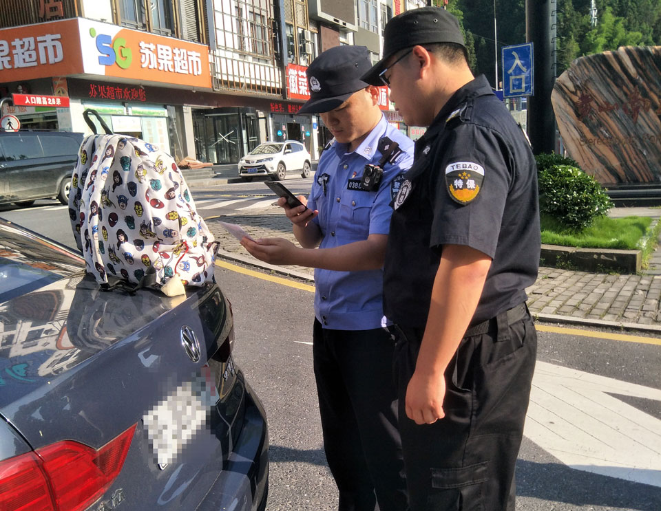2019年6月23日,宗保黃山市湯口市容項(xiàng)目隊(duì)員拾到雙肩包上交民警,得到民警贊揚(yáng)。
