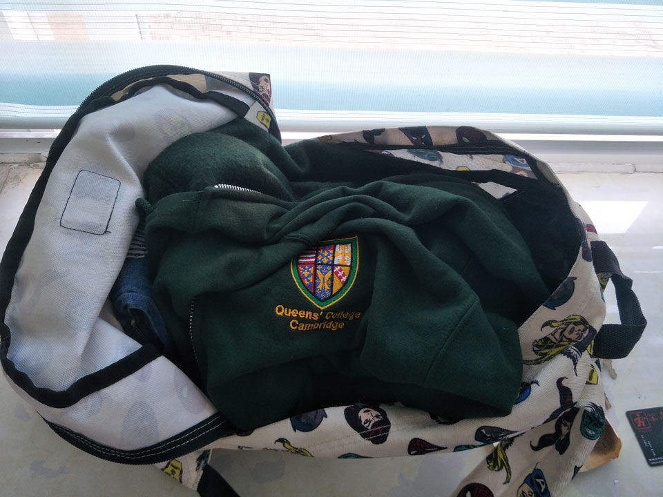 經(jīng)民警開包檢查:內(nèi)有現(xiàn)金120元,準(zhǔn)考證一張,購物卡一張,衣服、食品等物品。