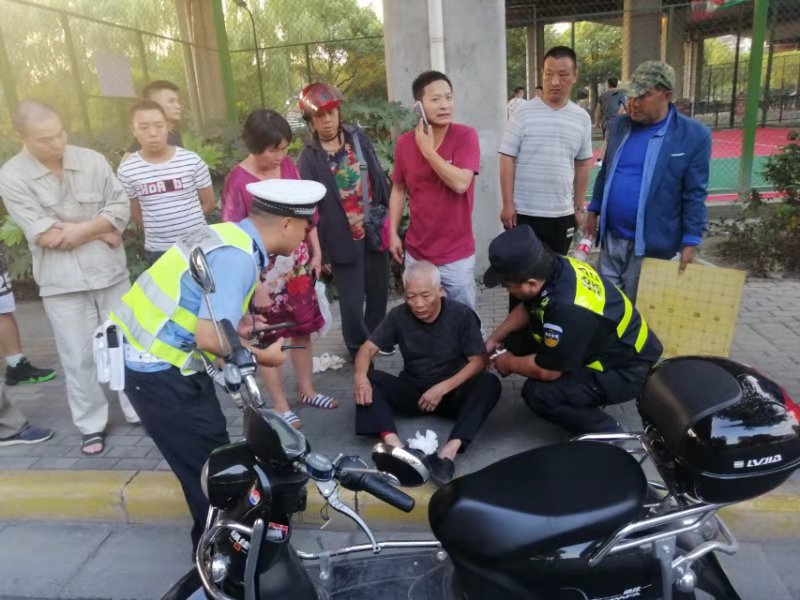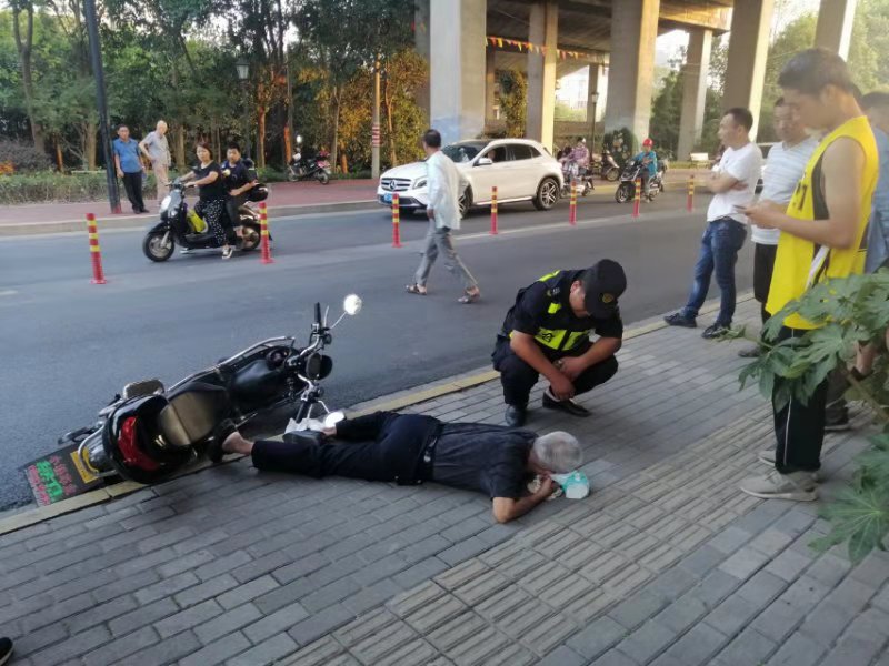 當(dāng)天下午16:50左右,小張像往常一樣緊張有序地執(zhí)勤,當(dāng)巡查到紅豐立交橋崗位時(shí)看到前面一群人圍觀,第一反應(yīng)可能出事了。小張急忙走上前,只見一位大爺騎電車摔倒在地。
