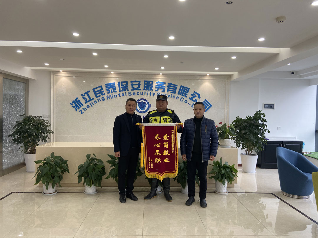 余經(jīng)理對(duì)公司駐開(kāi)發(fā)區(qū)市容項(xiàng)目隊(duì)員在蘭江菜市場(chǎng)周邊的序化管控工作充分肯定,特保隊(duì)員工作認(rèn)真負(fù)責(zé),為市場(chǎng)減輕了壓力,使菜市場(chǎng)周邊環(huán)境得到有效的改善,特送錦旗一面以此感謝。