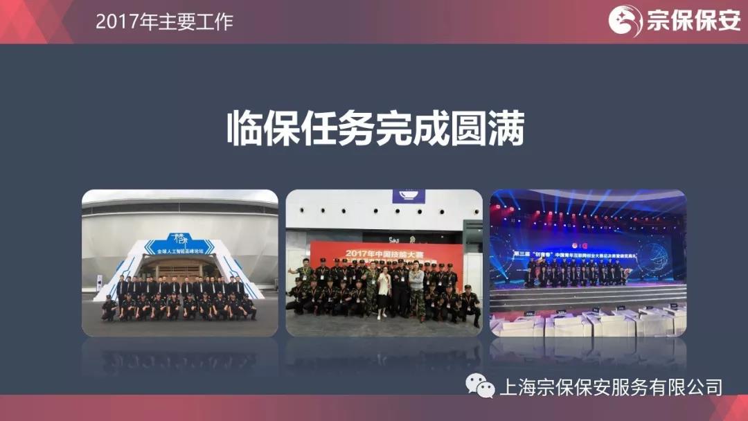 為百姓排憂解難,為政府保駕護航。上海國際馬拉松比賽、中國產業(yè)互聯(lián)網大會、中國服裝杭州峰會,杭州春浪音樂節(jié),青年企業(yè)家峰會,人工智能高端峰會,“五一”、“十一”臨港系列活動,大型活動安保一項接一項,人氣爆棚,又秩序井然?;顒蝇F(xiàn)場秩序維護、交通疏導、路線警衛(wèi)、停車場管理,處處都有宗保人的身影。有作為才能有地位。腳踏實地的宗保人用自己的實際工作贏得了社會的認可和尊重。