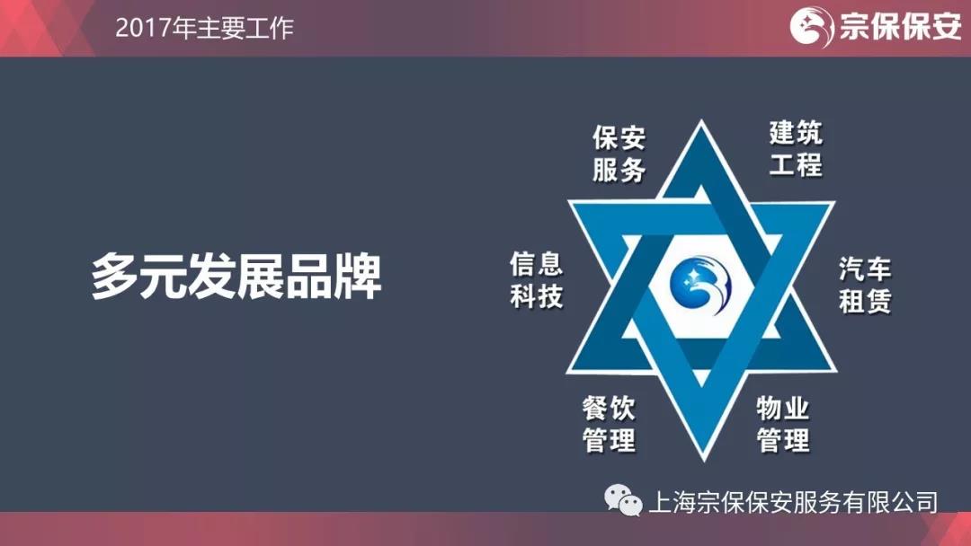 一花獨放不是春,百花齊放春滿園。目前,宗保旗下共有3家保安公司,1家餐飲管理公司,1家物業(yè)管理公司,1家信息科技公司,1家建筑工程公司。宗保品牌多元化發(fā)展道路初見成效。
