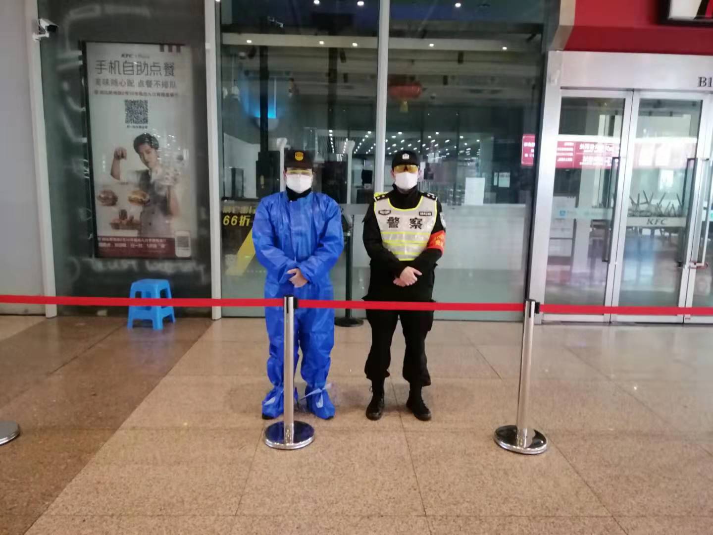 疫情防控中,黃杰在虹橋高鐵站配合民警維持出站旅客秩序,保障A類重點人員。