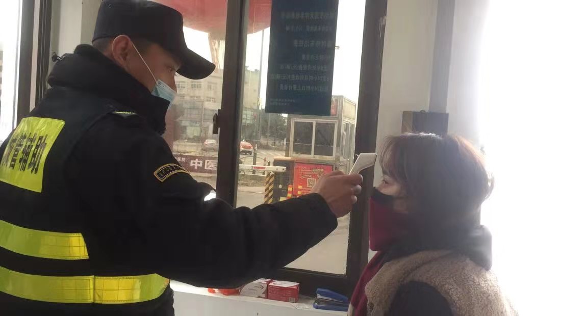 疫情防控中,郭凱配合鎮(zhèn)政府檢查過往車輛,檢測司乘人員體溫,做好數(shù)據(jù)登記。每天抗疫在一線,長達12個小時。