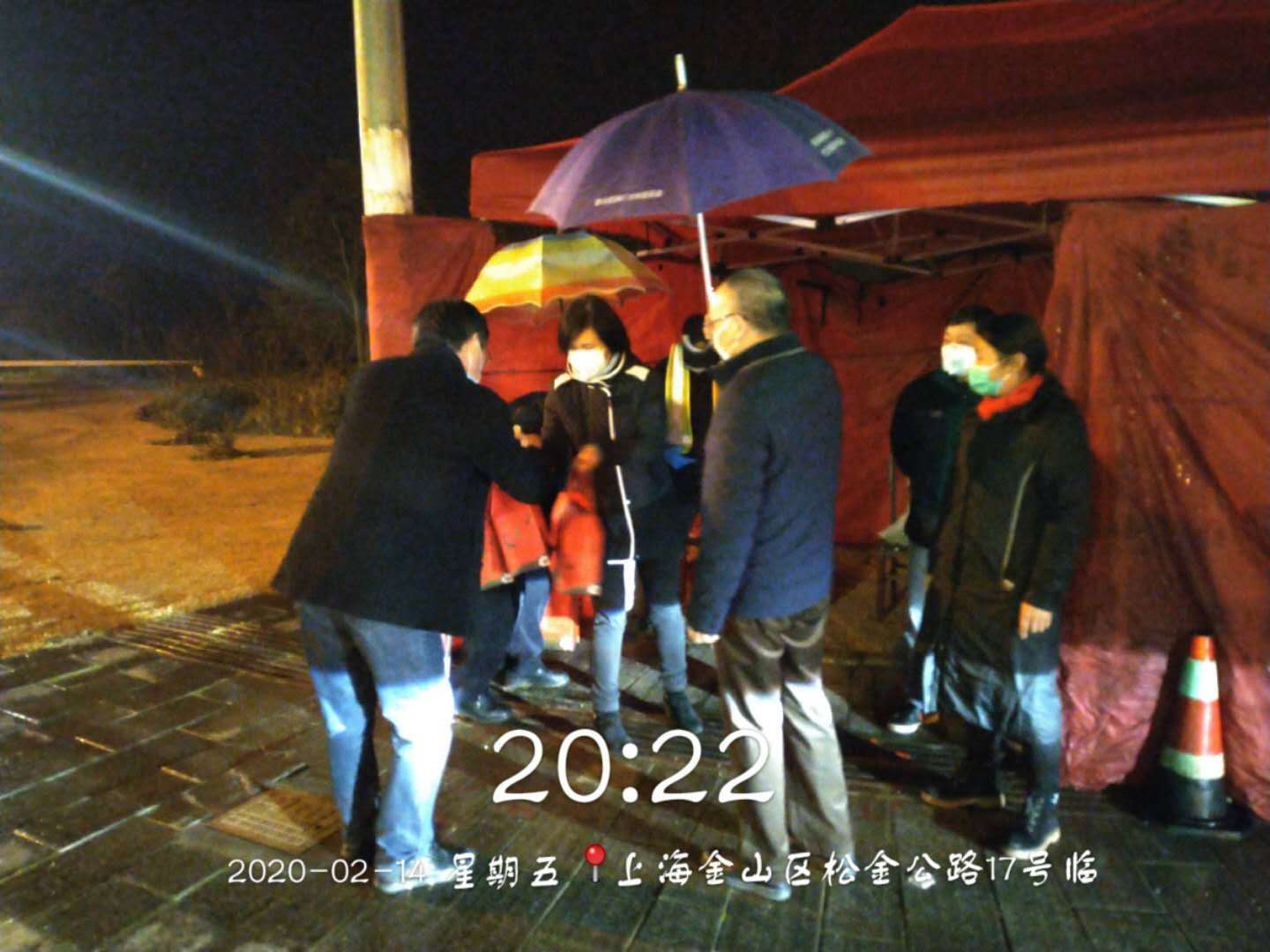 2月17日晚,金山衛(wèi)鎮(zhèn)鎮(zhèn)長周斌現(xiàn)場檢查指導疫情防控工作,看望慰問疫情防控一線的宗保員工。