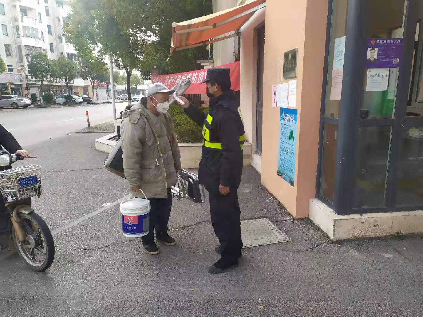 堅守在周浦鎮(zhèn)小區(qū)門口