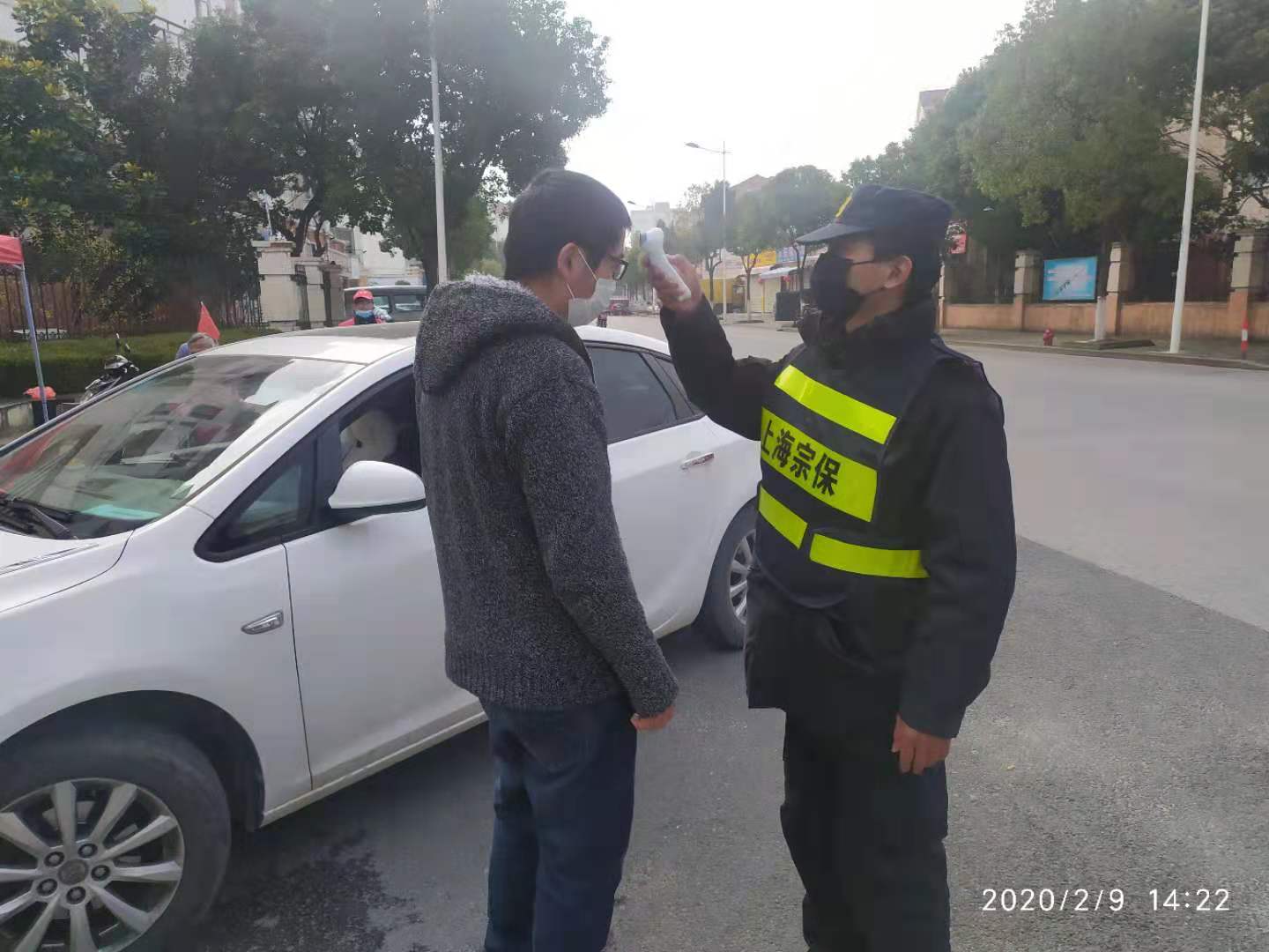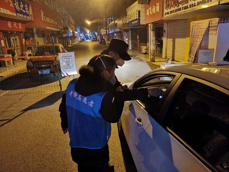 堅守在惠南鎮(zhèn)小區(qū)門口