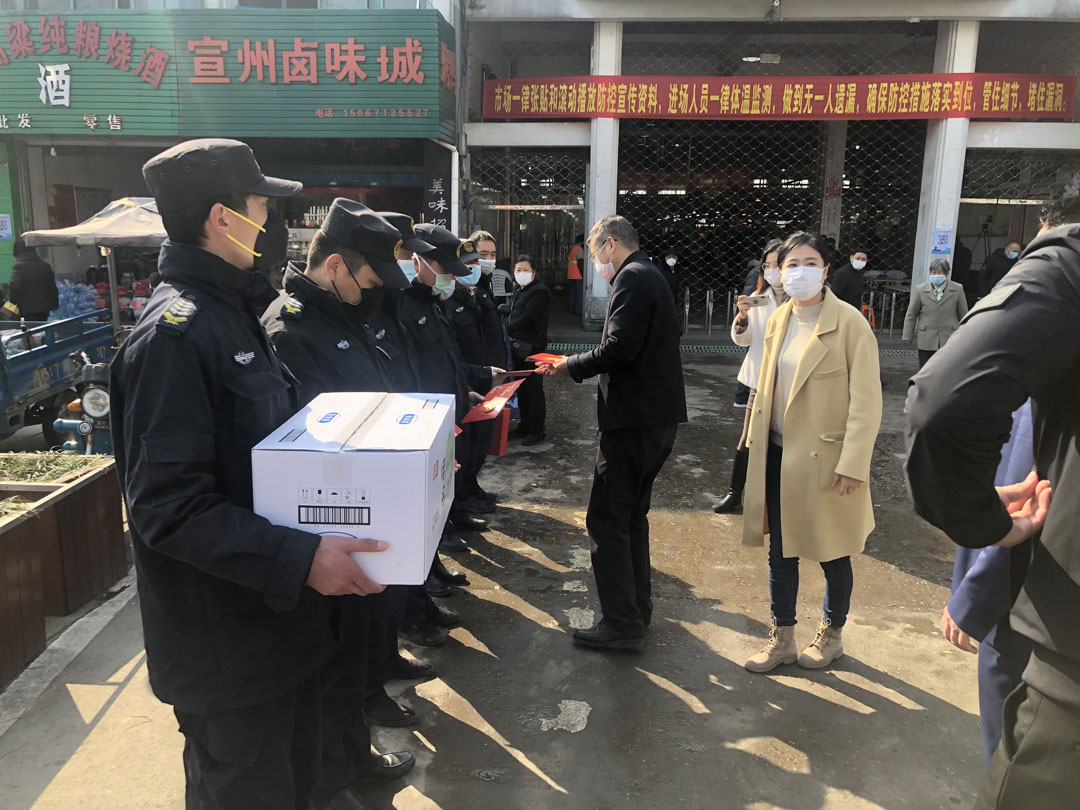3月5日,星橋街道黨工委組織委員陳墨飛、團委書記周靜儉一行到星橋菜場看望慰問浙江民泰一線執(zhí)勤隊員。