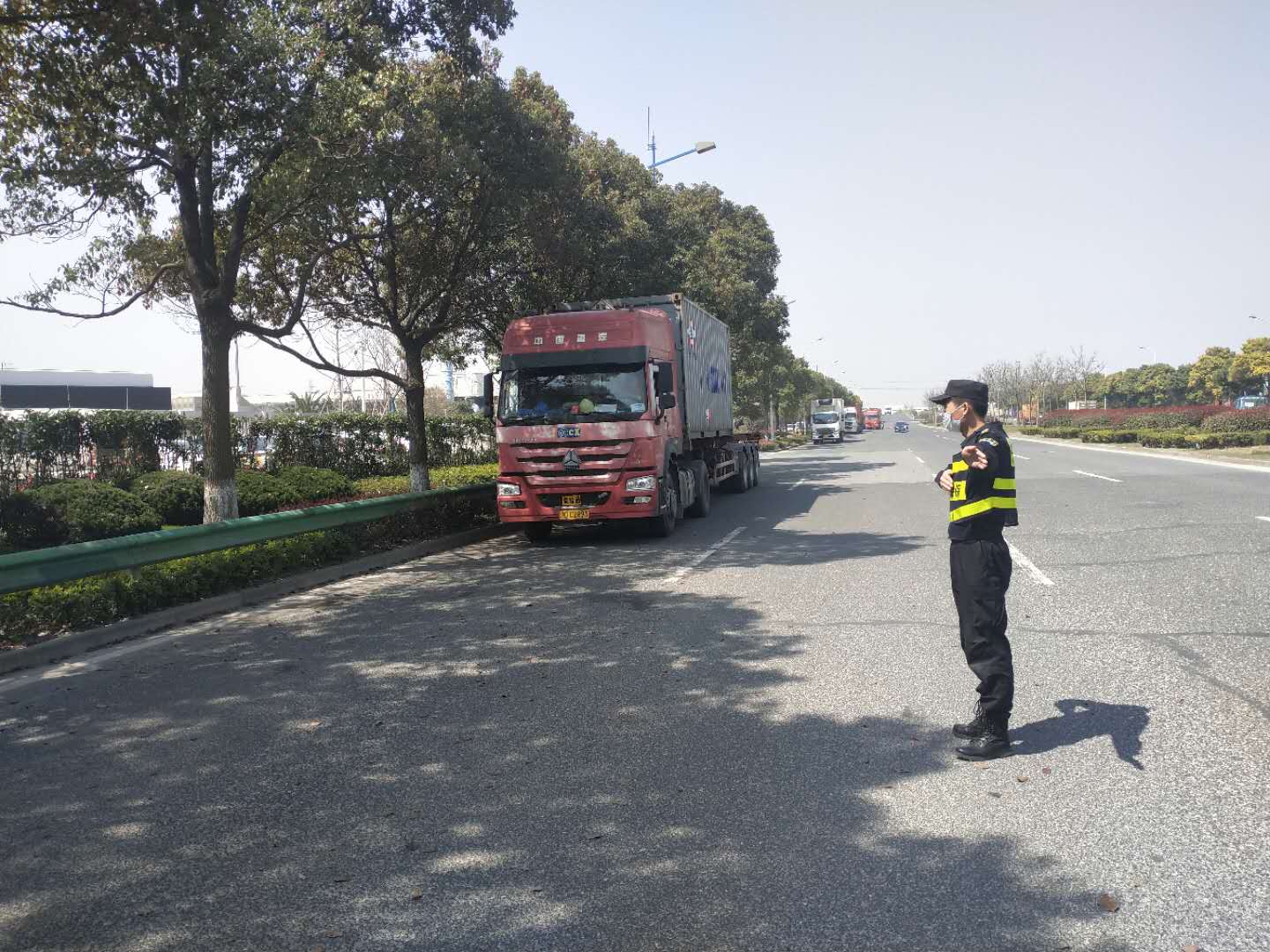 港城集團(tuán)危險(xiǎn)品倉(cāng)庫(kù)項(xiàng)目因其工作的特殊性,春節(jié)不放假。宗保公司駐該項(xiàng)目全體隊(duì)員不懼危險(xiǎn)、主動(dòng)作為、連續(xù)奮戰(zhàn),配合安監(jiān)部嚴(yán)格落實(shí)疫情防控措施規(guī)定,積極做好查驗(yàn)進(jìn)入危庫(kù)人員健康隨申碼,測(cè)量進(jìn)出人員體溫,檢查崗?fù)ぶ苓叞踩?,勸離無(wú)關(guān)人員和車(chē)輛,對(duì)進(jìn)出人員及庫(kù)區(qū)全面消毒,對(duì)進(jìn)出車(chē)輛進(jìn)行安全排查等工作,確保了疫情期間進(jìn)出危庫(kù)人員和車(chē)輛安全,實(shí)現(xiàn)了疫情防控和正常工作開(kāi)展兩不誤。