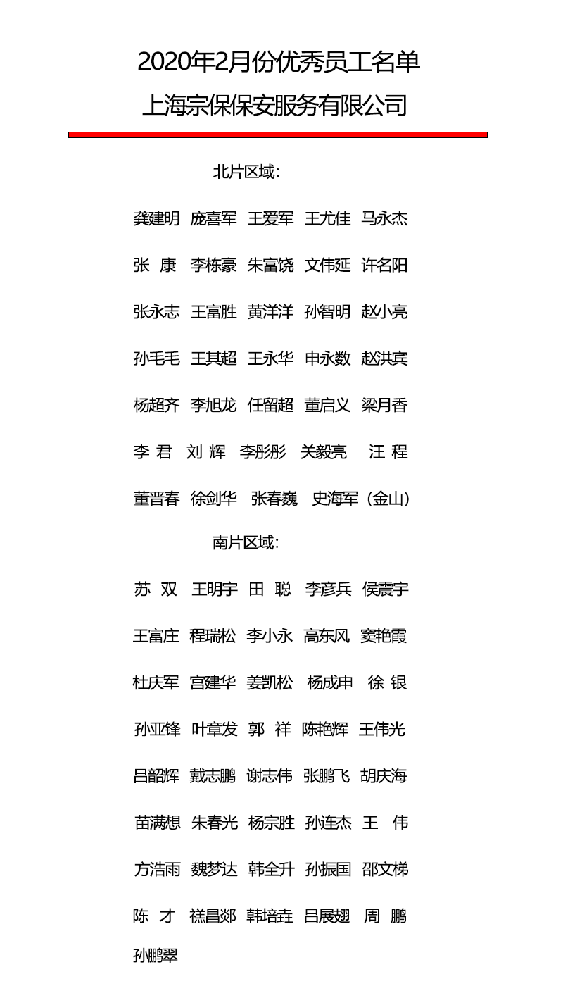 二月份新冠肺炎疫情蔓延,公司在克服因疫情返鄉(xiāng)員工無法按時(shí)返回,人員吃緊的情況下,在崗在位的員工發(fā)揚(yáng)無私奉獻(xiàn)、忘我工作、連續(xù)奮戰(zhàn)的精神,配合甲方出色地完成了疫情防控工作,其中涌現(xiàn)出了一批優(yōu)秀員工。為表彰先進(jìn),樹立典型,激勵(lì)后進(jìn),在各項(xiàng)目推薦,各部門審定把關(guān)的基礎(chǔ)上,經(jīng)公司董事會(huì)研究,決定對(duì)2月份工作表現(xiàn)優(yōu)異的龔建明等110名優(yōu)秀員工,予以通報(bào)表彰獎(jiǎng)勵(lì)(獎(jiǎng)金已隨二月份工資發(fā)放)。