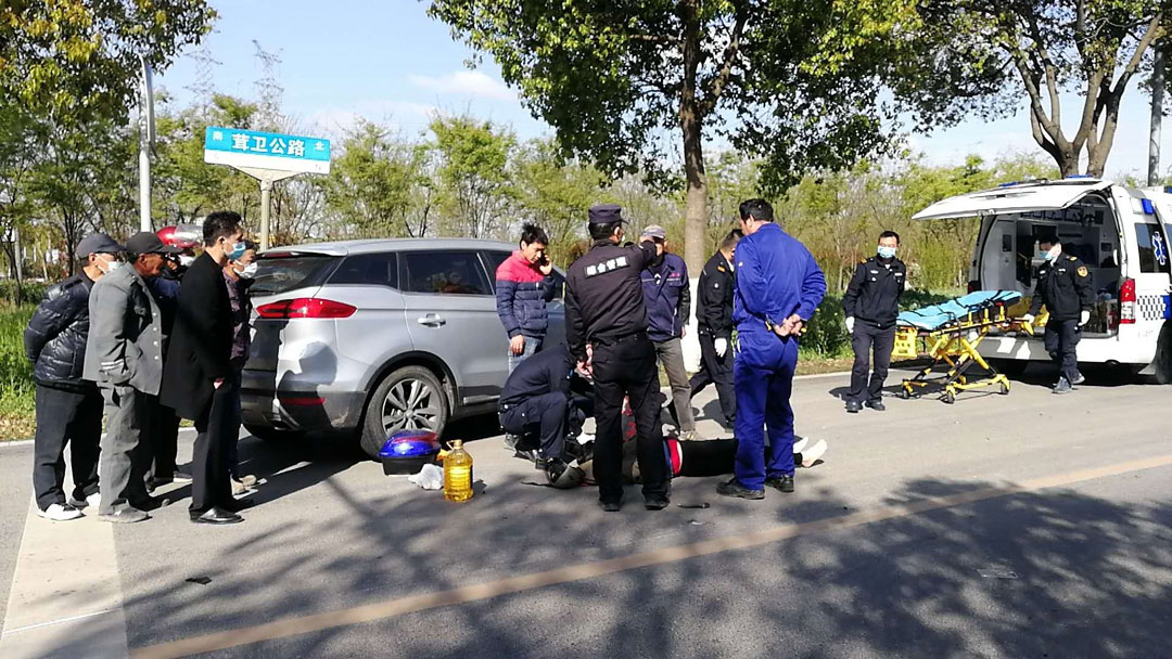 4月5日上午9點(diǎn)左右,宗保公司駐金山衛(wèi)市容項(xiàng)目隊(duì)員張建華、賈鐵雕在上班途經(jīng)茸衛(wèi)公路查梅路交叉口時(shí),目睹了一起車禍發(fā)生——一輛機(jī)動(dòng)車與一輛電瓶車相撞?,F(xiàn)場(chǎng)電瓶車的零碎部件散落在地上,電瓶車主受傷躺在路邊不能起身;機(jī)動(dòng)車駕駛員一時(shí)間嚇得六神無主,不知所措。