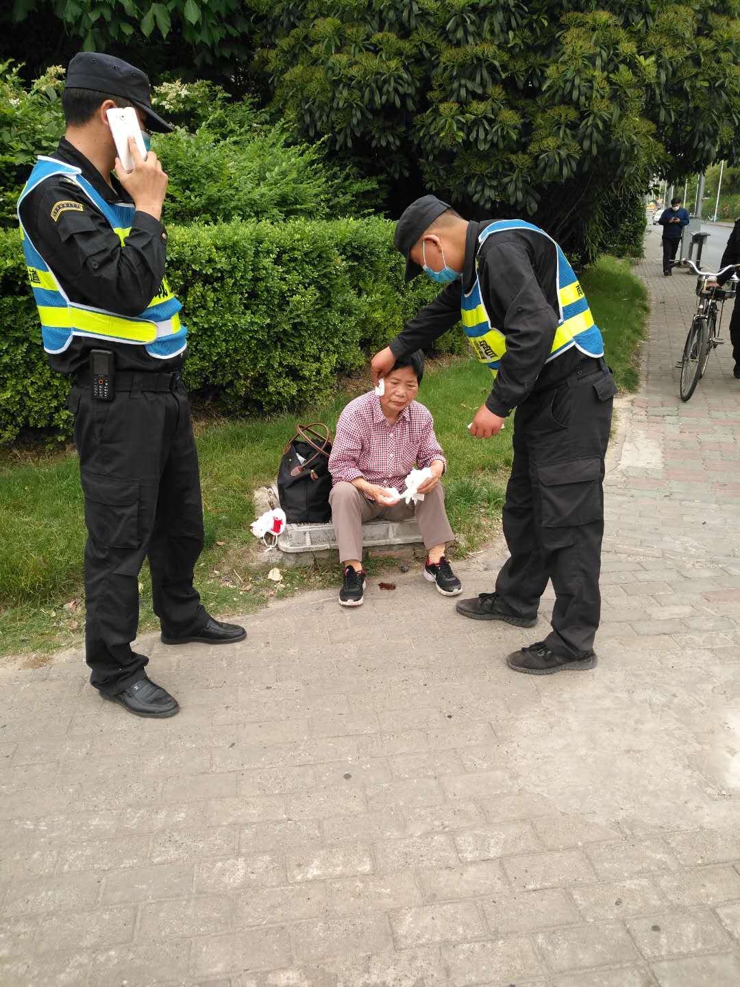 5月14日15:30左右,宗保公司駐南碼頭市容項目隊員甘文兵、楊召群巡查至楊高南路東三里橋路交叉口時,發(fā)現一位老人坐在路邊,臉上有斑斑血跡,老人只是機械性地擦著臉上的血,而周圍來來往往的人卻熟視無睹,事不關己,無人施以援手給予幫助。
