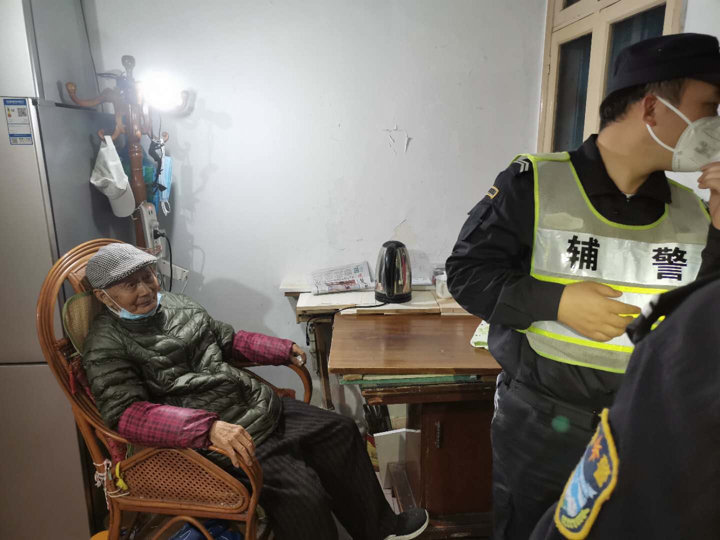三人順著導航行駛到金楊三街社區(qū)門口,車子還未停穩(wěn),老人就激動地說:“就是這里,就是這里?!避囎油7€(wěn)后,三名隊員細心地把老人攙扶下車,在小區(qū)物業(yè)值班室,經(jīng)物業(yè)人員和老人溝通后得知老人家里的具體位置。于是,出現(xiàn)了本文開頭的一幕。