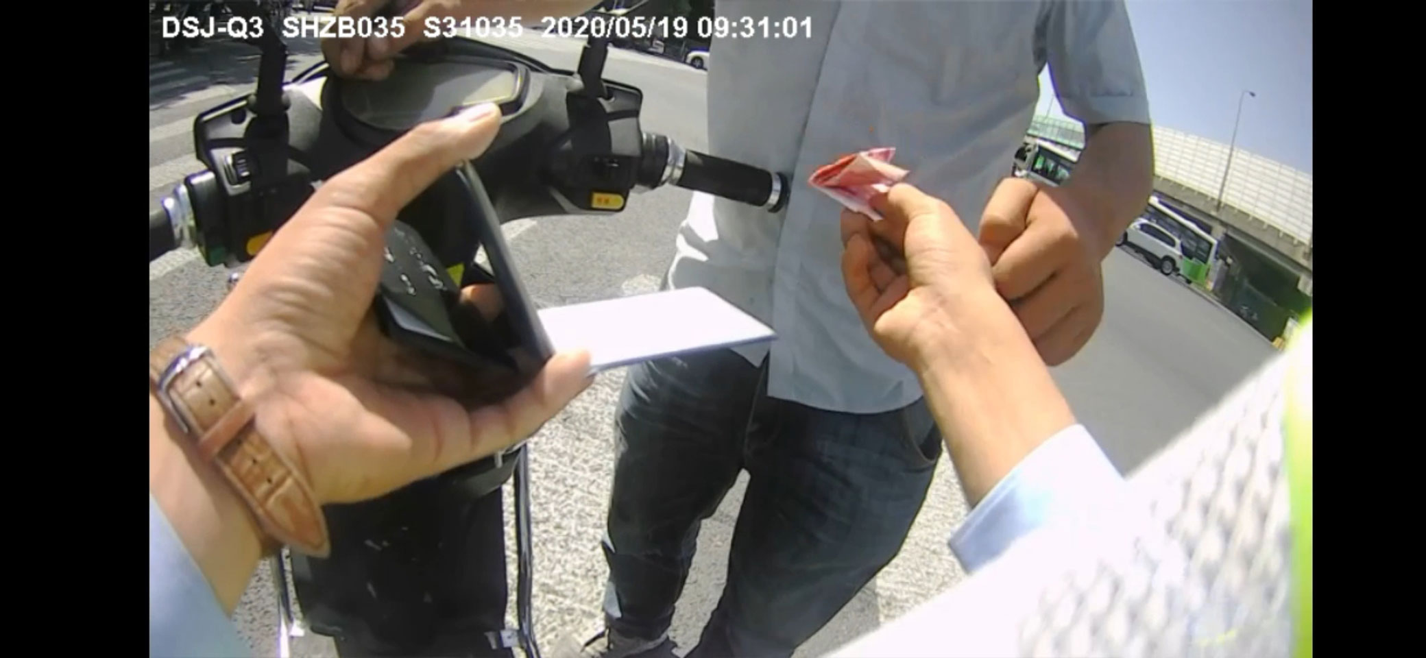 5月19日9:30,宗保公司駐閔行區(qū)域虹橋交通輔警項(xiàng)目副組長(zhǎng)付光東,在顧戴路S20下口處配合民警進(jìn)行交通整治過(guò)程中,一名違章的機(jī)動(dòng)車(chē)駕駛員在行駛證中夾帶了200元現(xiàn)金,希望付光東“高抬貴手”對(duì)其違法行為網(wǎng)開(kāi)一面。付光東對(duì)該駕駛員的賄賂嚴(yán)詞拒絕,并將該駕駛員的行為上報(bào)現(xiàn)場(chǎng)民警。