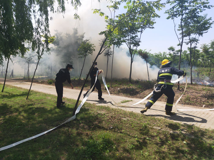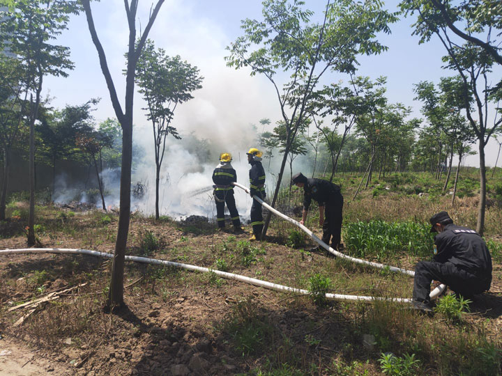 5月19日上午,宗保公司駐書(shū)院市容項(xiàng)目朱新雨、李興忠兩名隊(duì)員巡邏至五尺溝西路路段,發(fā)現(xiàn)道路一側(cè)樹(shù)林著火,火勢(shì)很大,濃煙滾滾。周邊都是樹(shù)林,火勢(shì)一旦蔓延,后果不堪設(shè)想。兩名隊(duì)員急忙撥打119火警電話(huà)報(bào)警,并向項(xiàng)目副隊(duì)長(zhǎng)石健報(bào)告現(xiàn)場(chǎng)情況。石健隨即安排人員到現(xiàn)場(chǎng),疏導(dǎo)道路交通,做好現(xiàn)場(chǎng)安全保障。