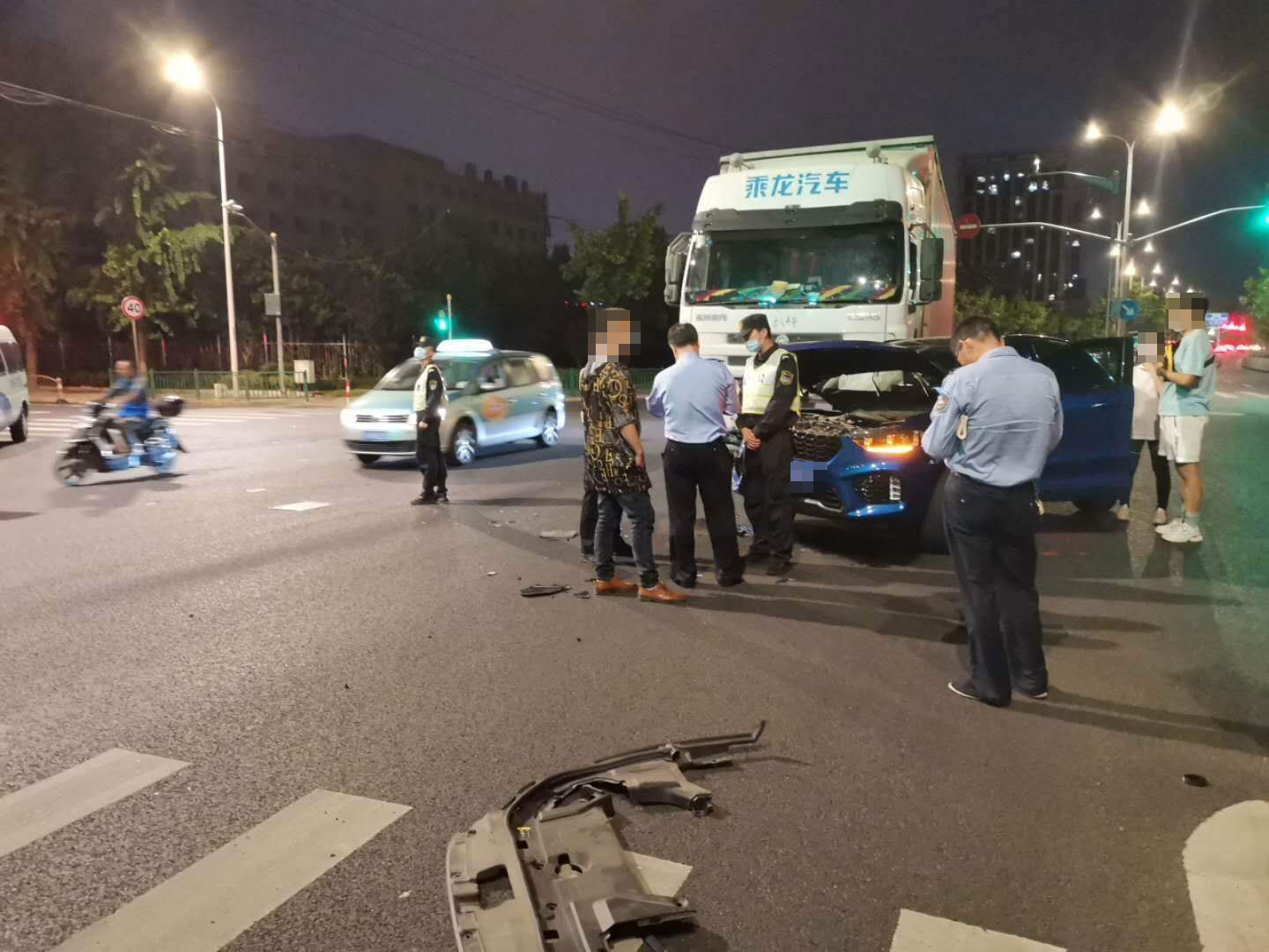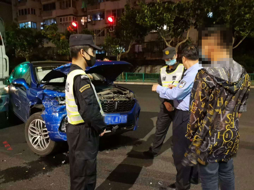 5月20日20:40,浦東新區(qū)金橋鎮(zhèn)巨峰路金京路交叉口發(fā)生一起大貨車與小汽車相撞的交通事故。宗保公司駐金橋派出所輔警項(xiàng)目隊(duì)員范沖、黃祥宇剛好巡邏至此,目睹了事故的全過程。