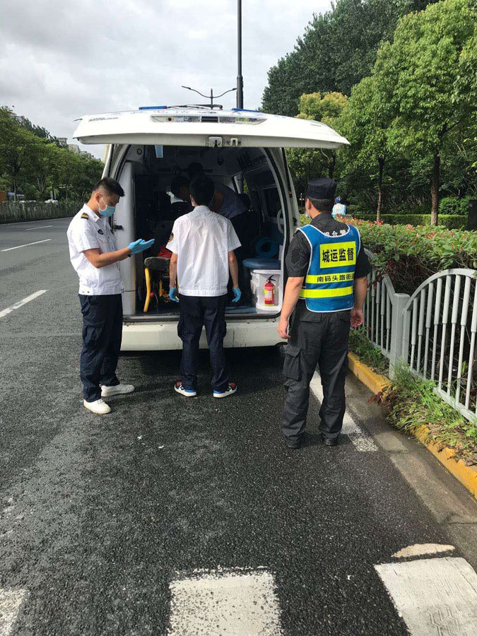 時值上班早高峰,馬路上人車來來往往。宋文松唯恐再出現(xiàn)意外,一直守護(hù)在該男子身邊。120急救人員趕到現(xiàn)場后,初步診斷該男子是暫時性昏迷,具體病情需進(jìn)一步診斷。小宋幫助醫(yī)護(hù)人員把發(fā)病男子抬上擔(dān)架送上救護(hù)車,看著救護(hù)車緊急駛離,小宋繼續(xù)投入到緊張的巡邏中。