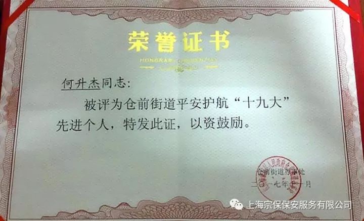 杭州倉前輔警項(xiàng)目隊(duì)員蔣志浩、張小龍、何升杰三人在此次“平安護(hù)航十九大”安保活動(dòng)中被倉前街道評(píng)為“先進(jìn)個(gè)人”,獲得榮譽(yù)證書及物質(zhì)獎(jiǎng)勵(lì)。