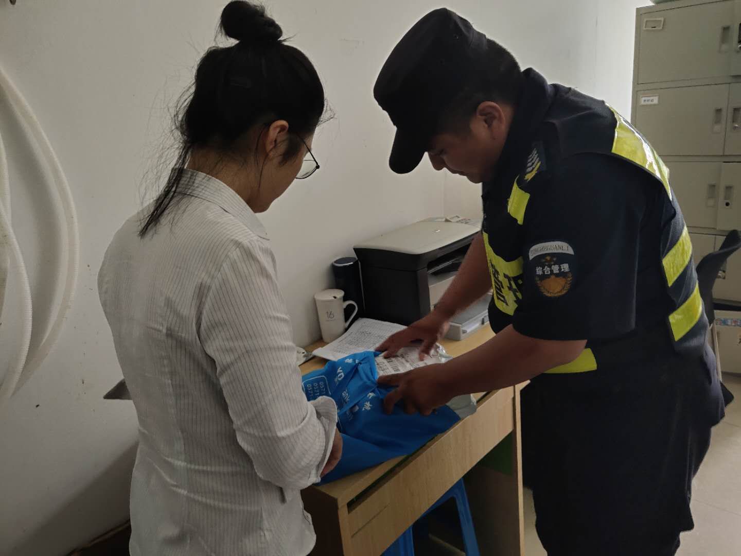 7月13日19:30,浙江民泰公司駐東湖市容項目隊員張艮振巡邏途經(jīng)章家河農(nóng)貿市場時,發(fā)現(xiàn)地上有一個快遞包裹,通過上面收件人的聯(lián)系方式,張艮振和包裹主人取得了聯(lián)系,并約定好在民泰公司基地辦公室領取。
