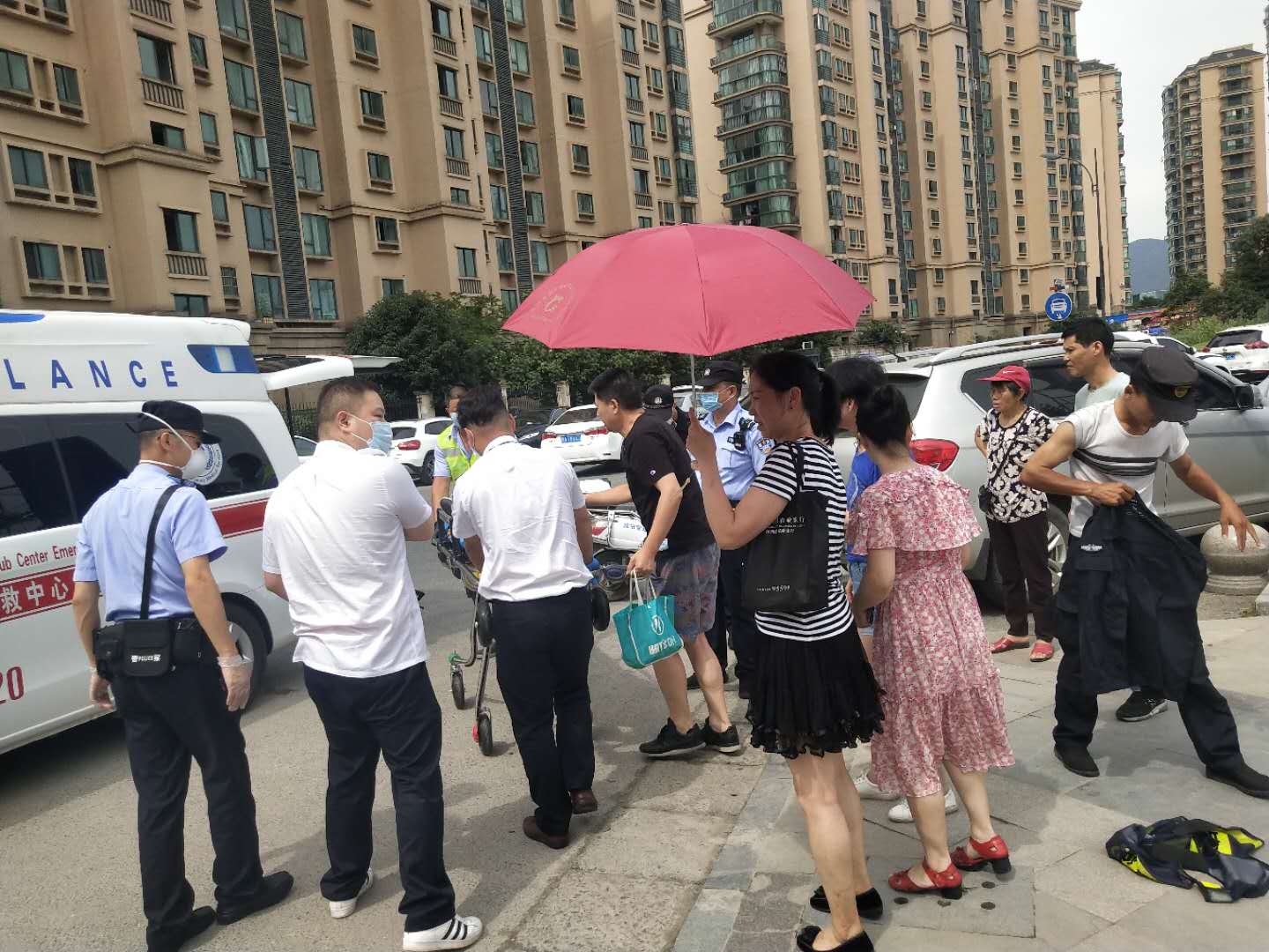 當(dāng)天,浙江民泰駐星橋市容項(xiàng)目隊(duì)員向榮在場環(huán)路上正常巡邏,遠(yuǎn)遠(yuǎn)看到前面圍著一群人。憑著多年的工作經(jīng)驗(yàn),向榮覺得前面一定是出事了,就急忙跑了過去。一名中年女子癱倒在地,圍觀的群眾議論紛紛。向榮立即上前詢問狀況,該女子家屬說是由于低血糖再加上天氣炎熱導(dǎo)致中暑,家屬瞬間也慌了神沒了主張。