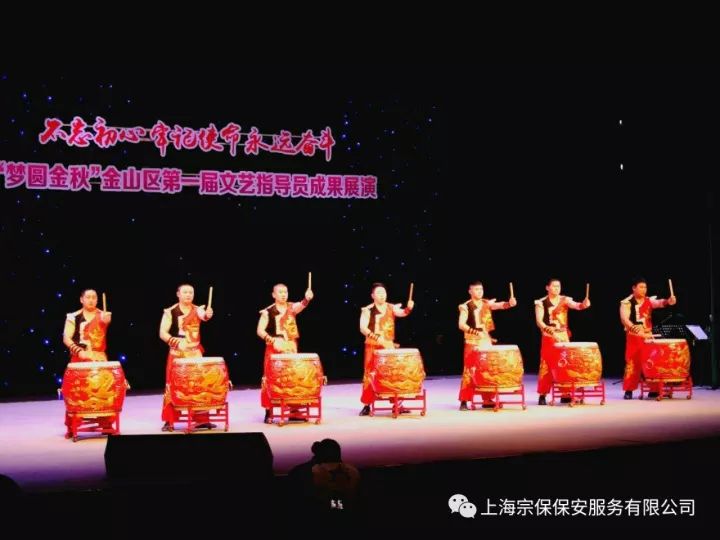 金山茍青安報(bào)道:上海宗保保安服務(wù)有限公司駐金山項(xiàng)目隊(duì)員組成的鴻鼓隊(duì),代表金山衛(wèi)鎮(zhèn)參加金山區(qū)主題為“不忘初心、牢記使命、永遠(yuǎn)奮斗”暨“夢(mèng)圓金秋”第一屆文藝指導(dǎo)員成果展覽表演,表演的鼓樂(lè)節(jié)目《精氣神》一舉榮獲二等獎(jiǎng)。