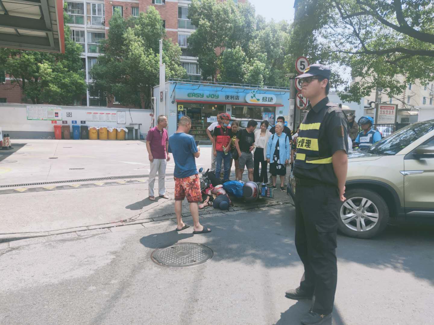 9月3日,宗保公司駐三林市容項目隊員張鵬、張治付巡邏時遇到一起交通事故,及時救助受傷女子脫離危險。