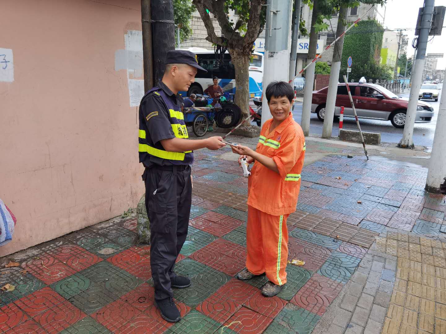 8月28日,周浦市容隊員尹釗在德浦路康沈路路口巡邏時,在路邊撿到一部手機(jī),后尋找到失主將其歸還。