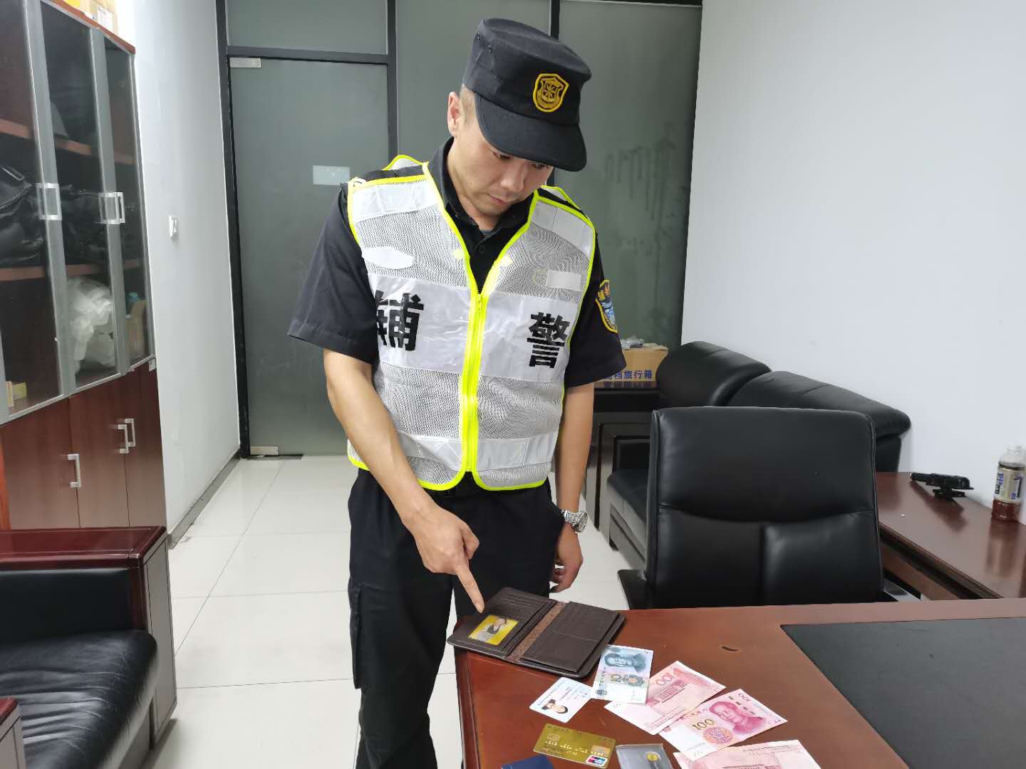 10月2日,宗保公司駐金橋輔警項(xiàng)目隊(duì)員祁會(huì)超撿到錢包,上交110接待大廳值班民警。