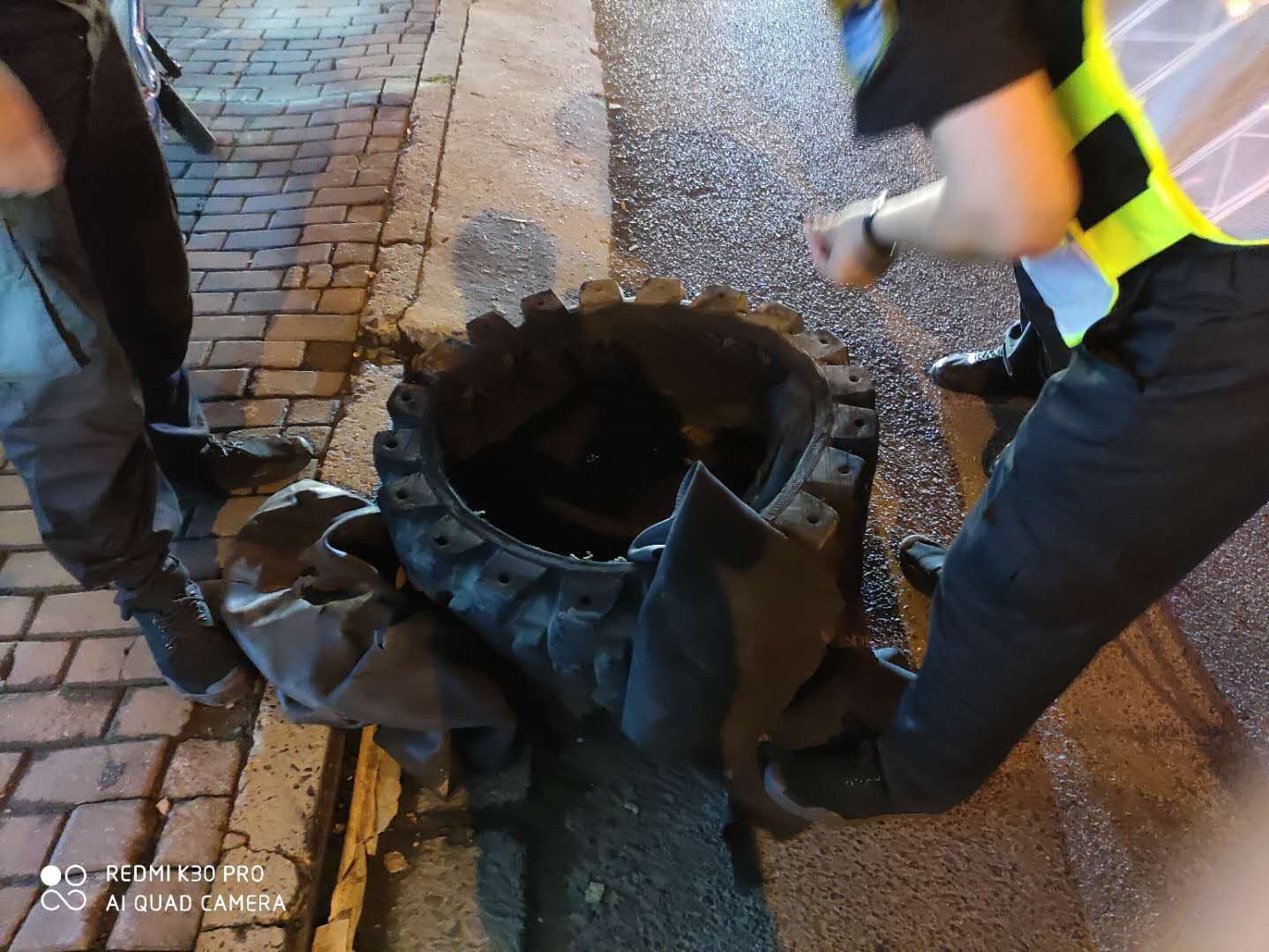 9月19日,宗保公司駐孫橋輔警項(xiàng)目隊(duì)員史李松、邵賓賓、王璐、劉夢龍等及時(shí)清理馬路上的壞輪胎,消除安全隱患,受到在場群眾的紛紛點(diǎn)贊。