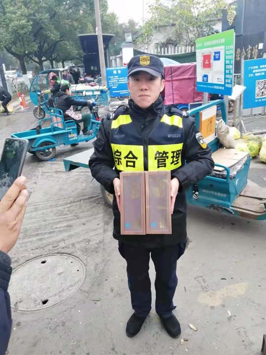 當(dāng)天11:35,楊洪在紅豐路巡邏時,在小芳超市向東約30米處撿到兩盒靈芝,便立即按照工作流程上報當(dāng)班組長,并按照指示在原地等待失主。